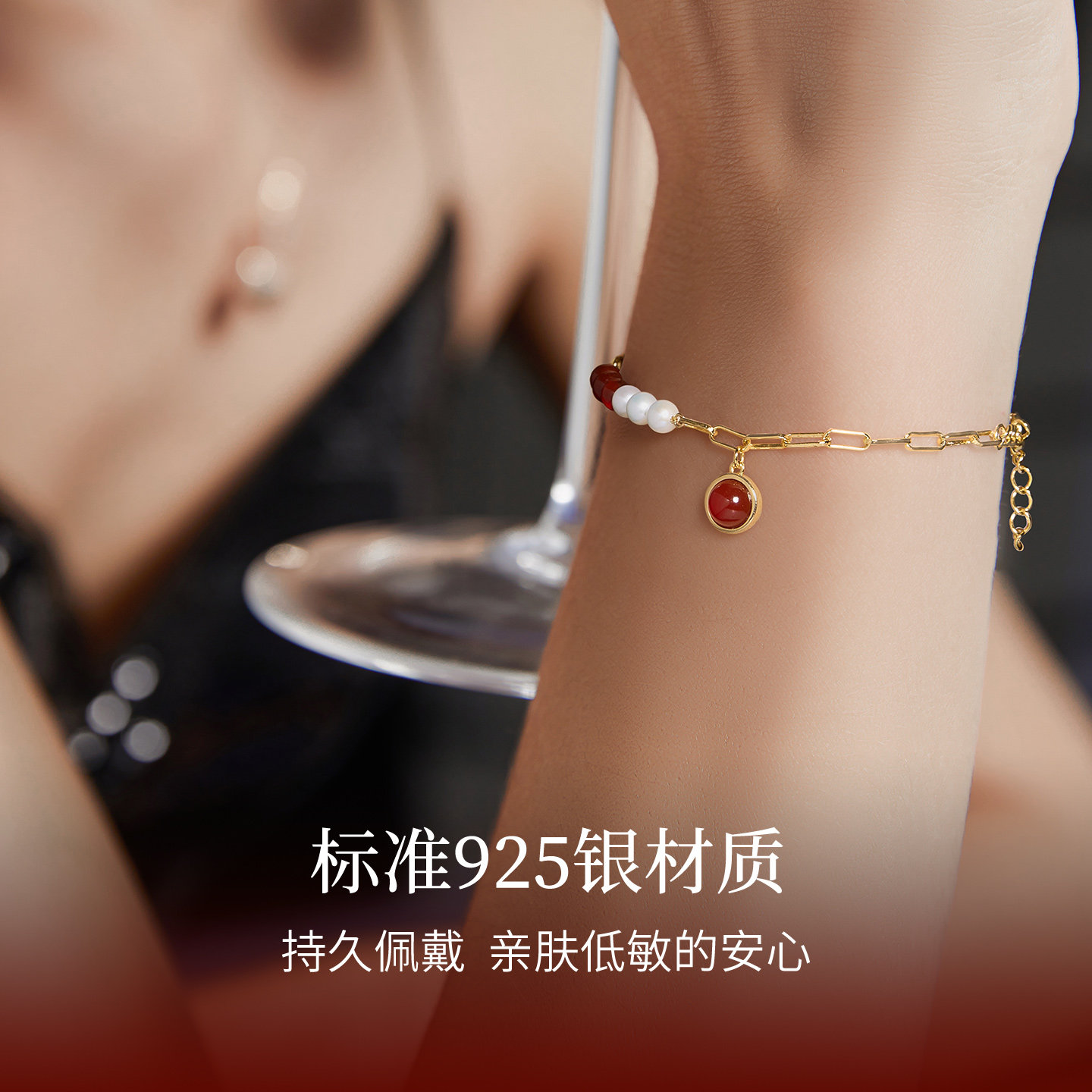 JAY新中式红玛瑙红绳手链925银珍珠手饰红色本命年2026新年礼物