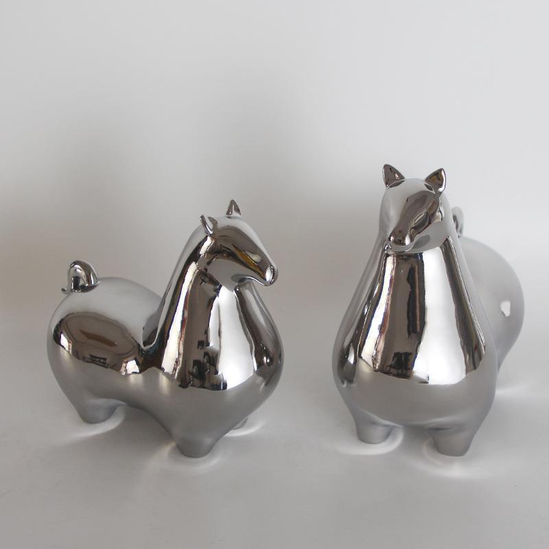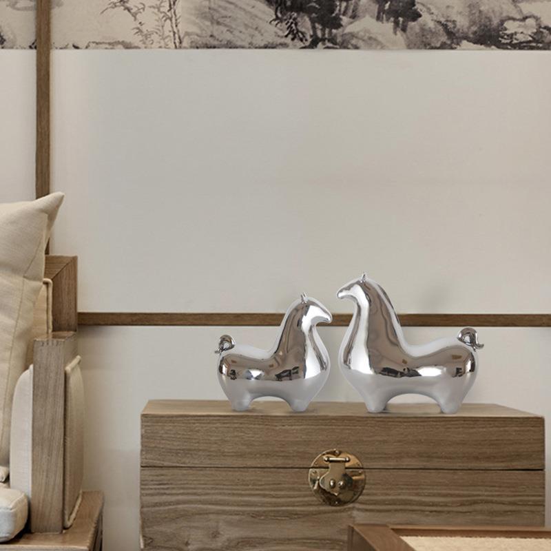 陶瓷镀银《唐马》陶瓷马摆件客厅酒柜办公室桌面装饰工艺品礼品