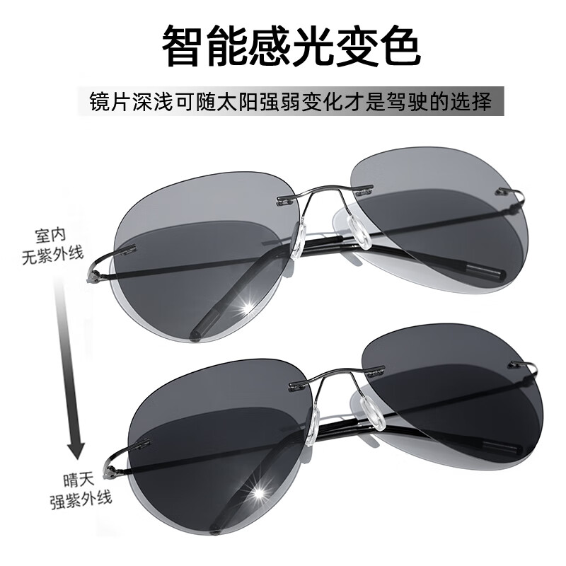 超轻无框变色偏光镜男驾驶专用开车男士偏光太阳眼镜蛤蟆墨镜男款