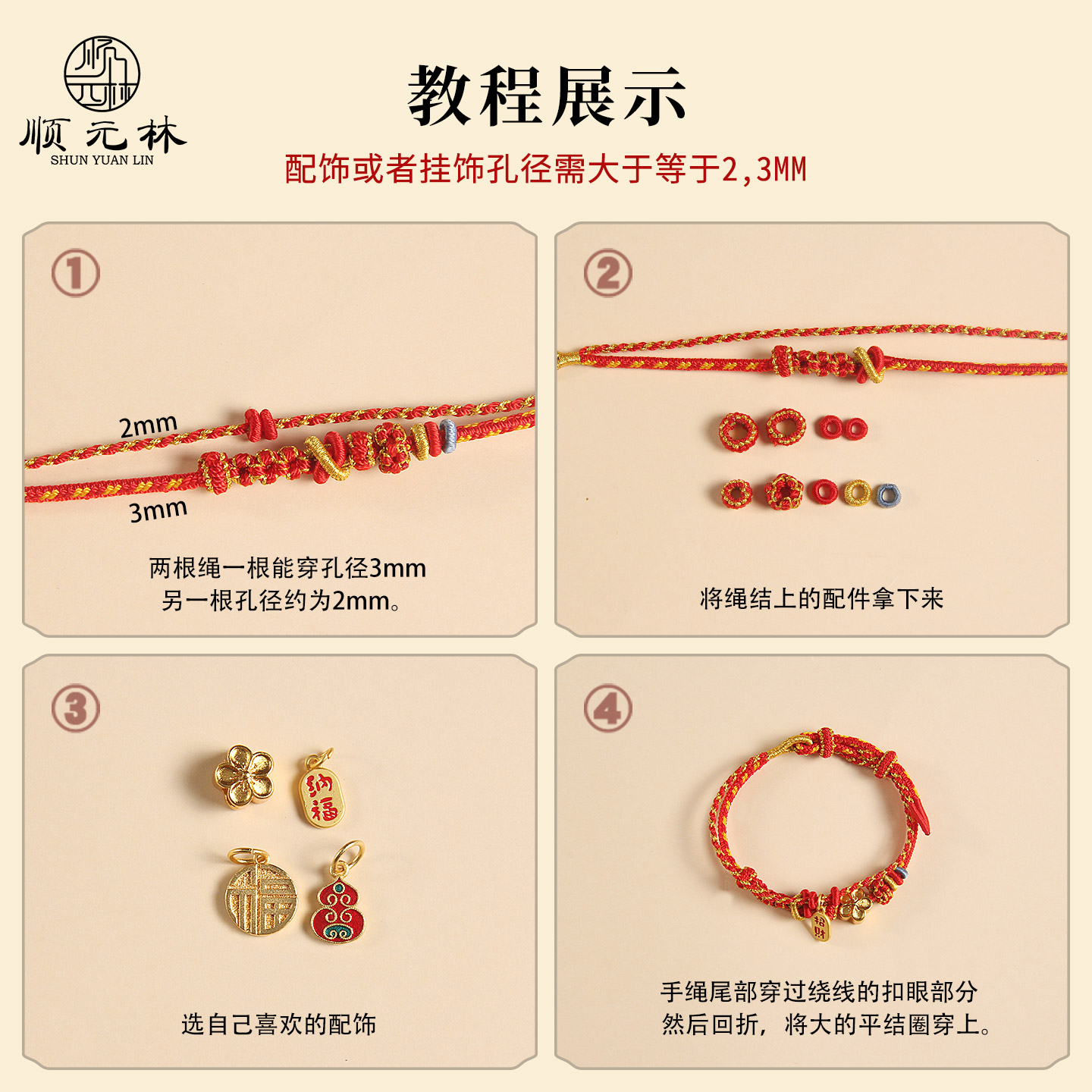 新款编织手绳手工半成品可穿黄金转运珠配件女款儿童红绳手链礼物