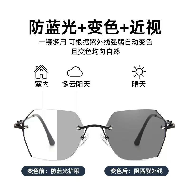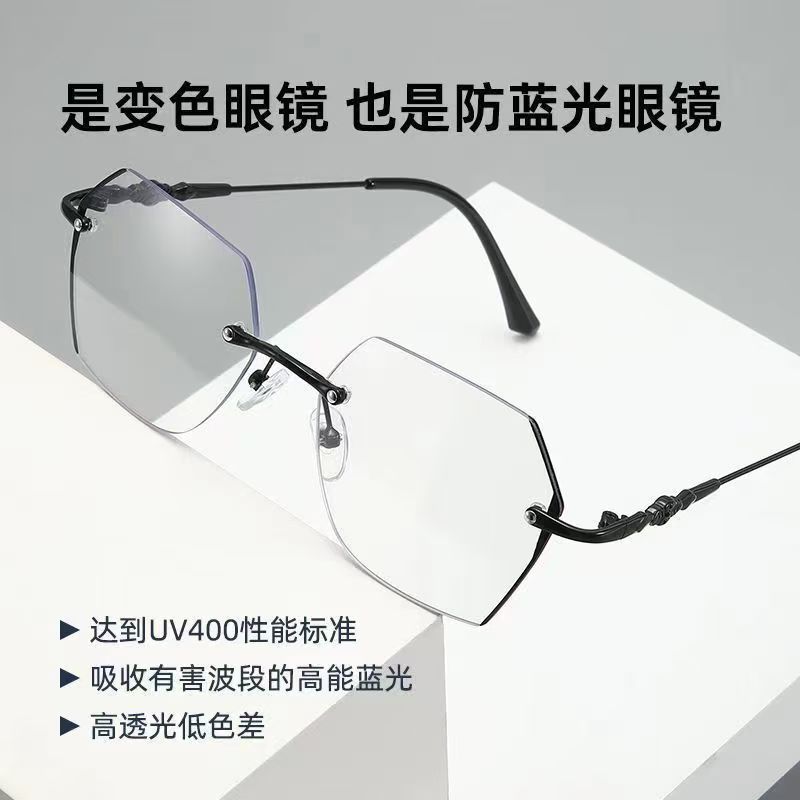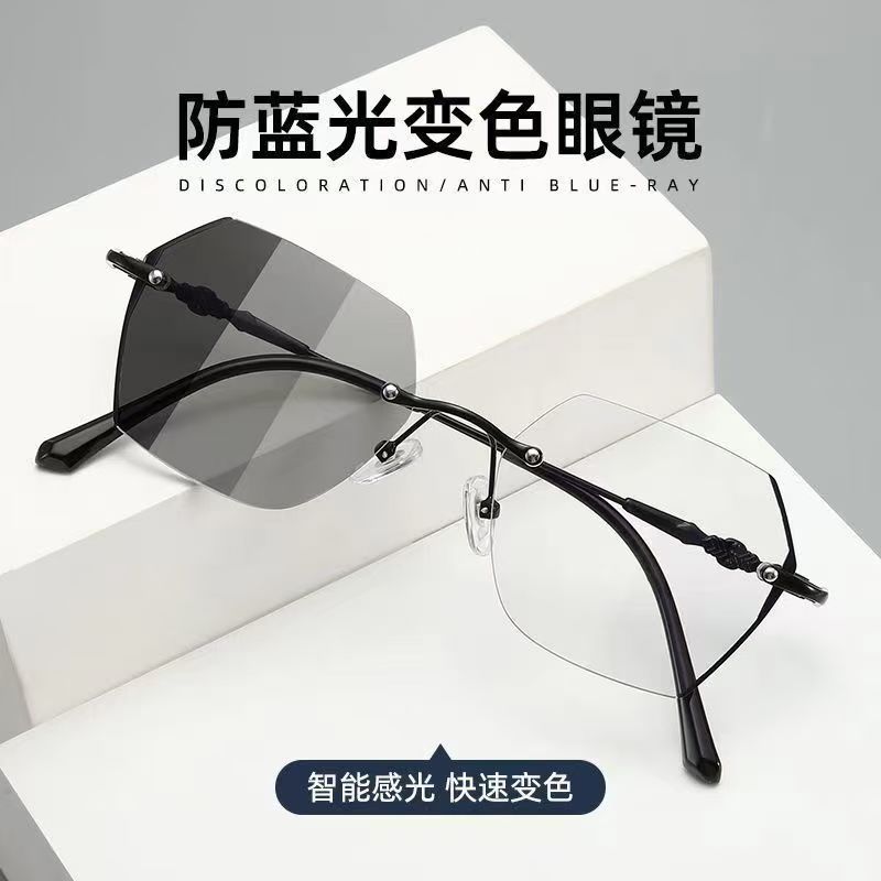 欧洲站新款无框自动感光变色眼镜男女商务超轻防蓝光抗疲劳有度数