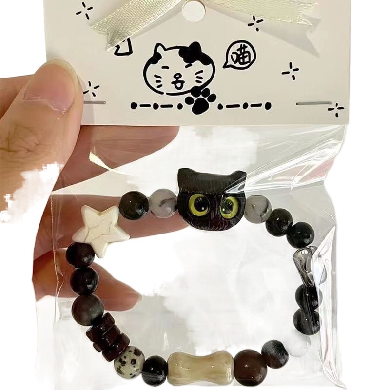 罗小黑奶酪黑白芝麻呆萌小猫手串高颜值小众情侣手链送闺蜜小