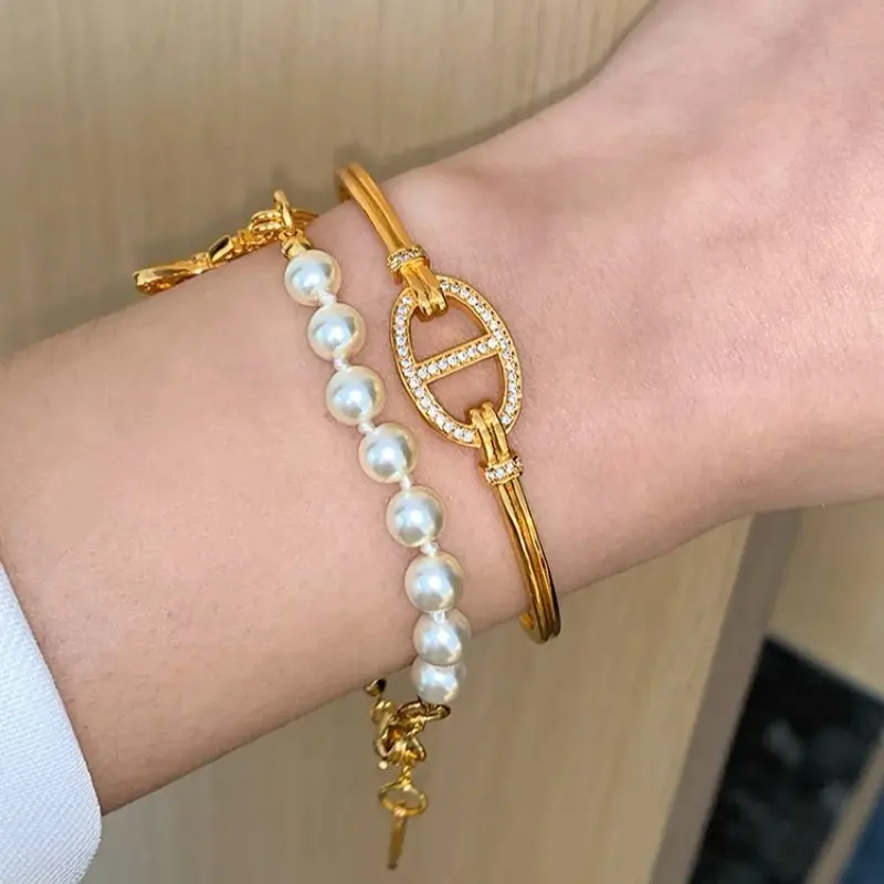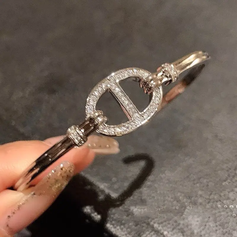复古气质猪鼻子手镯时尚小众新款字母手环简约满钻轻奢开口镯子