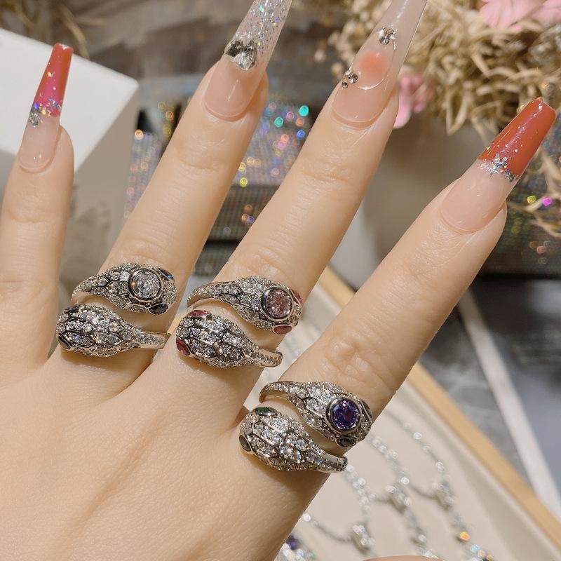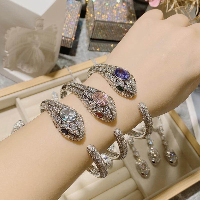 手镯手环镶钻石轻奢紫水晶粉晶满钻开口灵蛇头流苏耳环吊坠戒指女