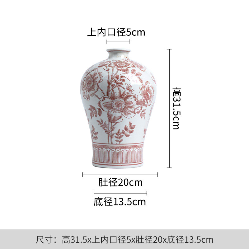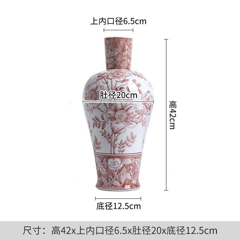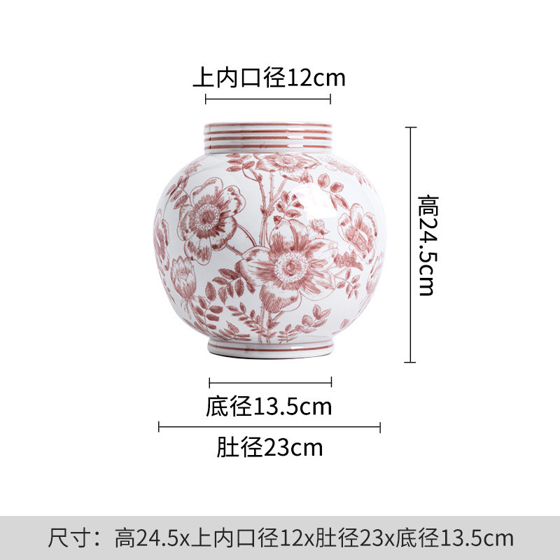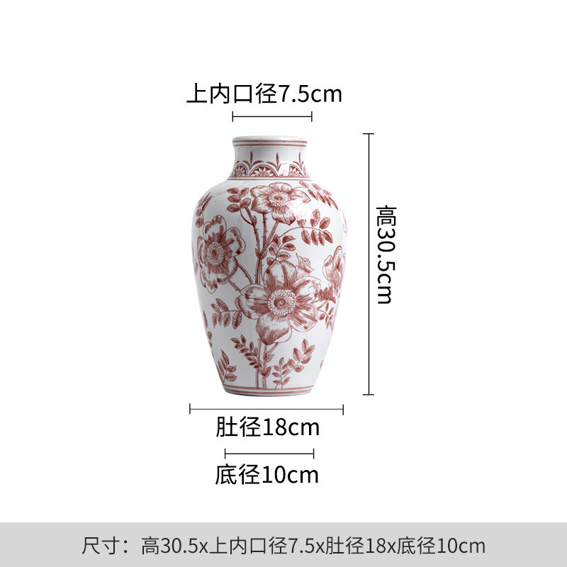 手绘陶瓷红色玫瑰陶瓷花瓶港风陶瓷装饰摆件可水培陶瓷饰品感