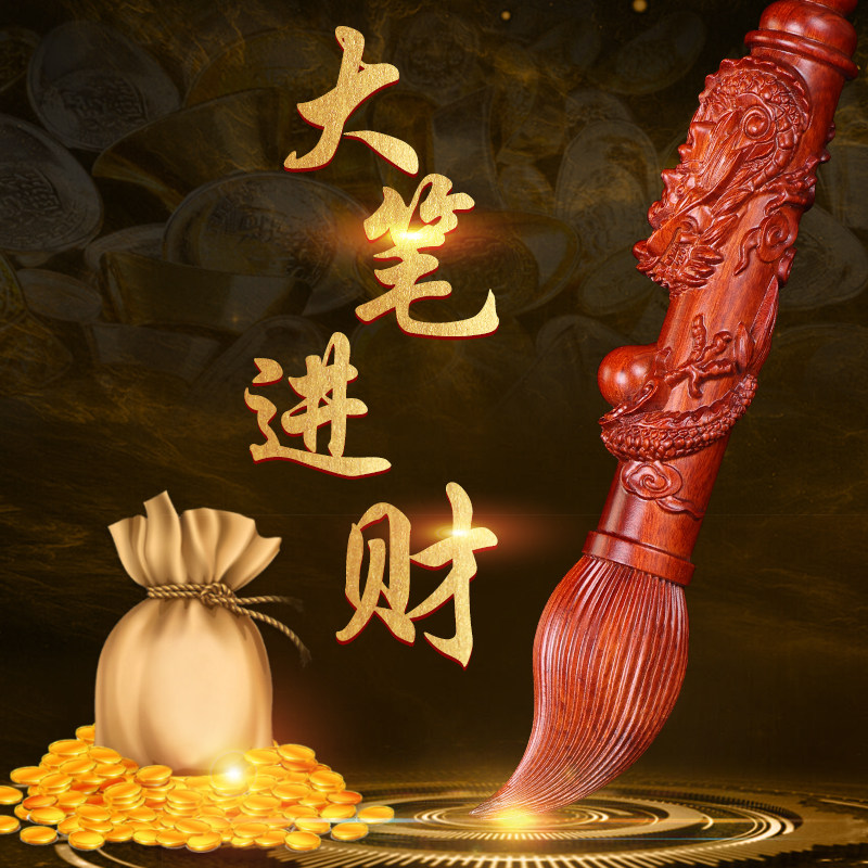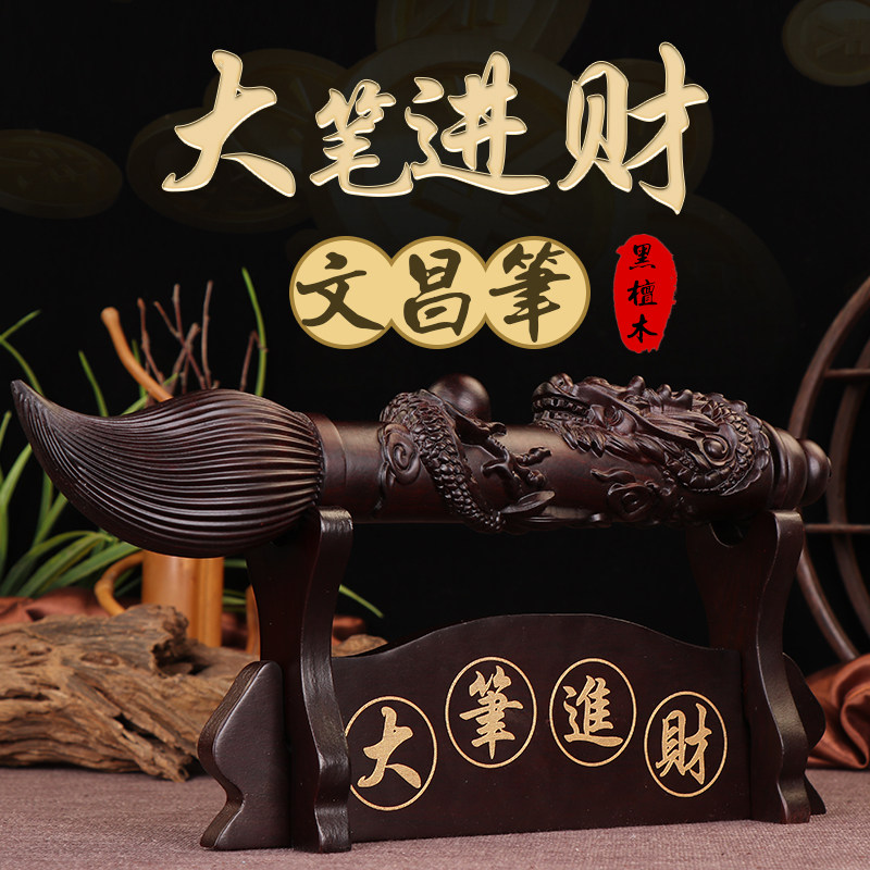 黑檀木大笔进财摆件实木质发大笔财文昌笔工艺品客厅办公室装饰品