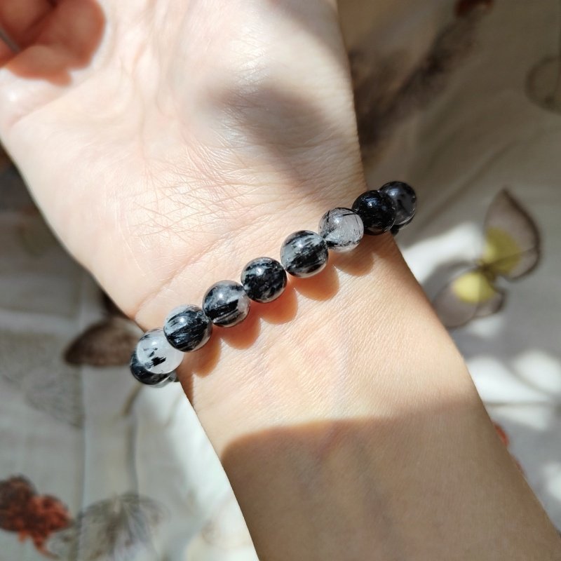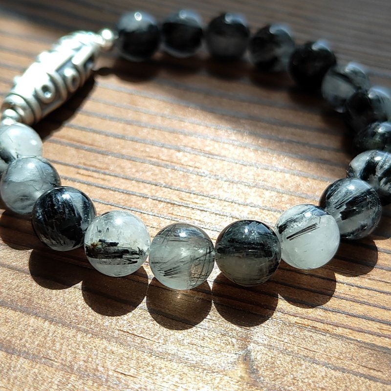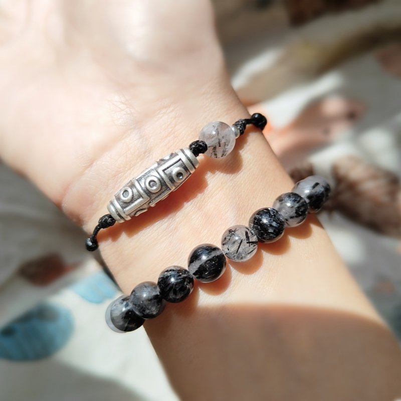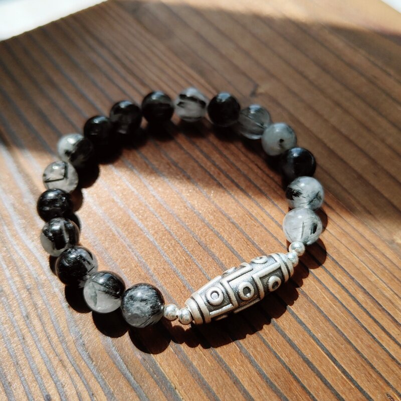 云墨 原创天然黑发晶石999足银天珠百搭文艺水墨手绳男女手串礼物
