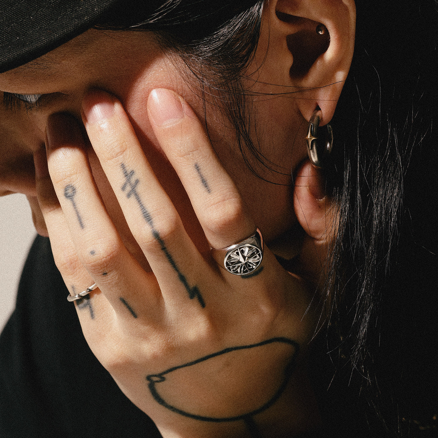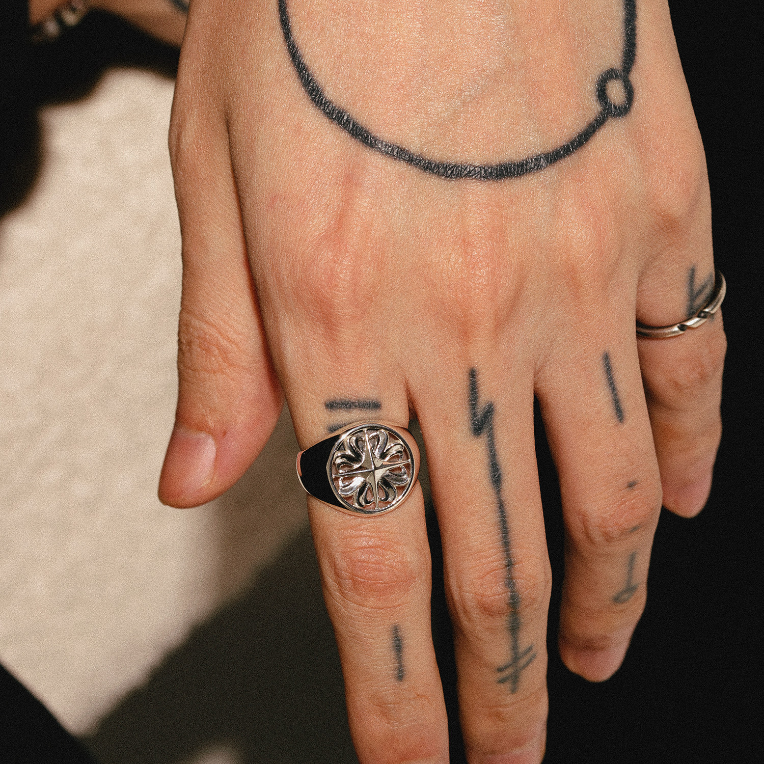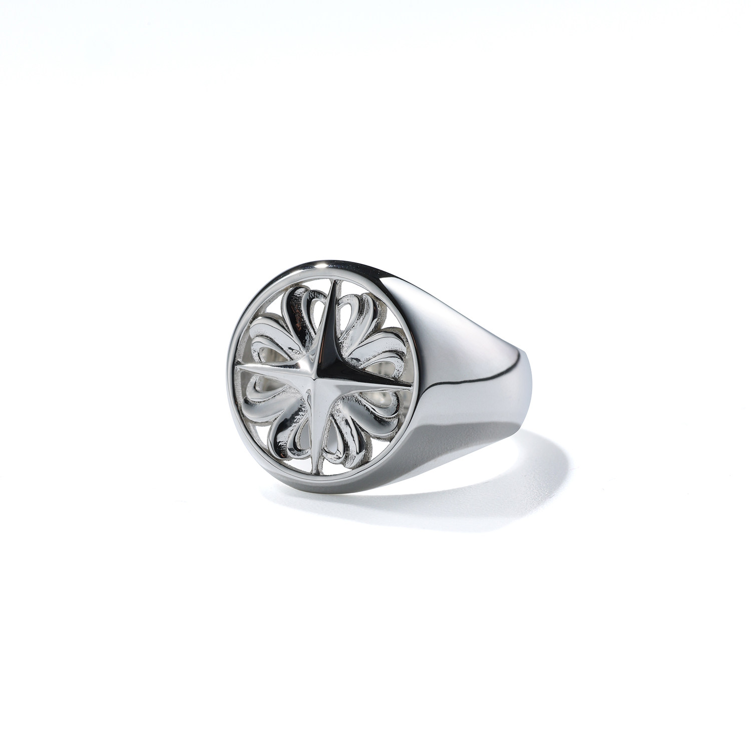 siderealmade十字星四叶草镂空银戒指