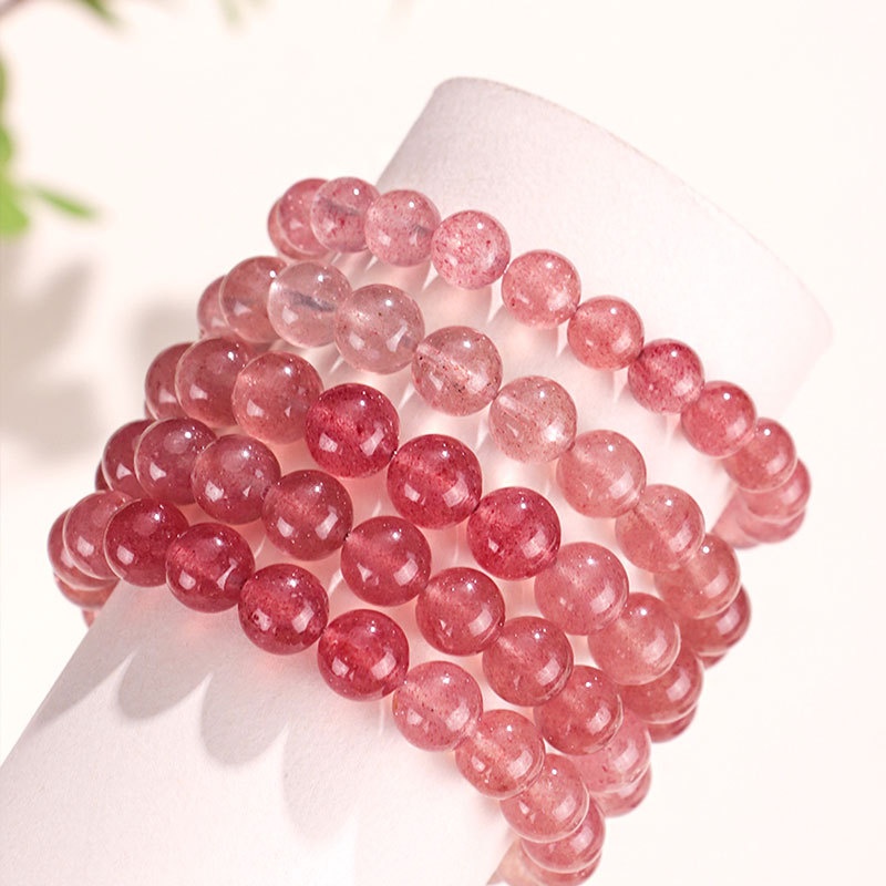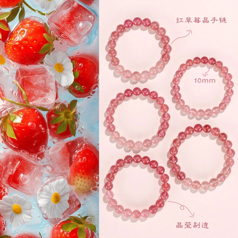 新品天然渐变红草莓水晶串珠手链女时尚百搭原创手串首饰