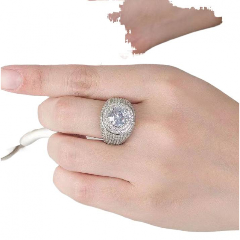 ins嘻哈黑人夸张戒指bling闪镶钻大圆欧美锆石男满钻男士复古男