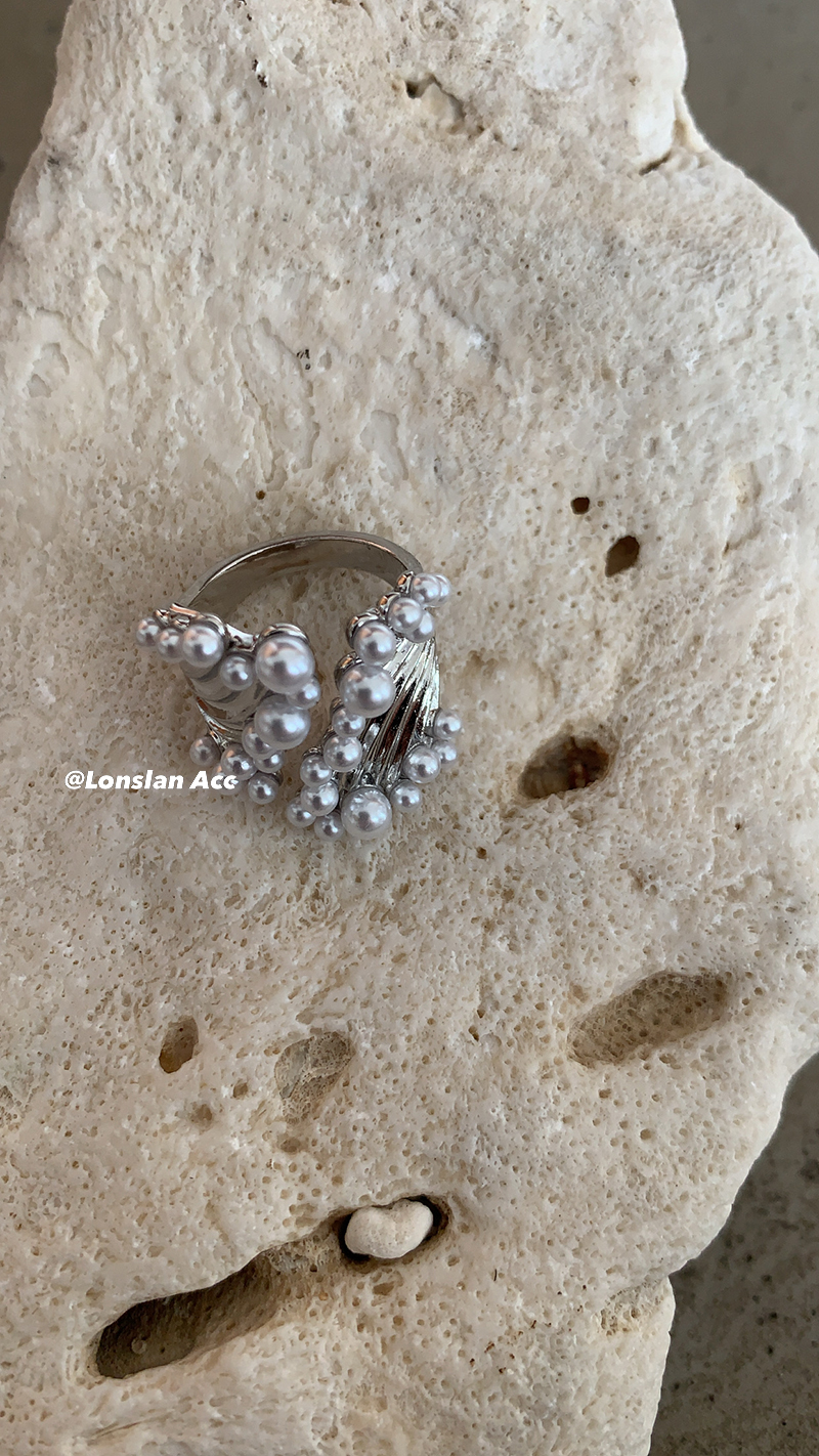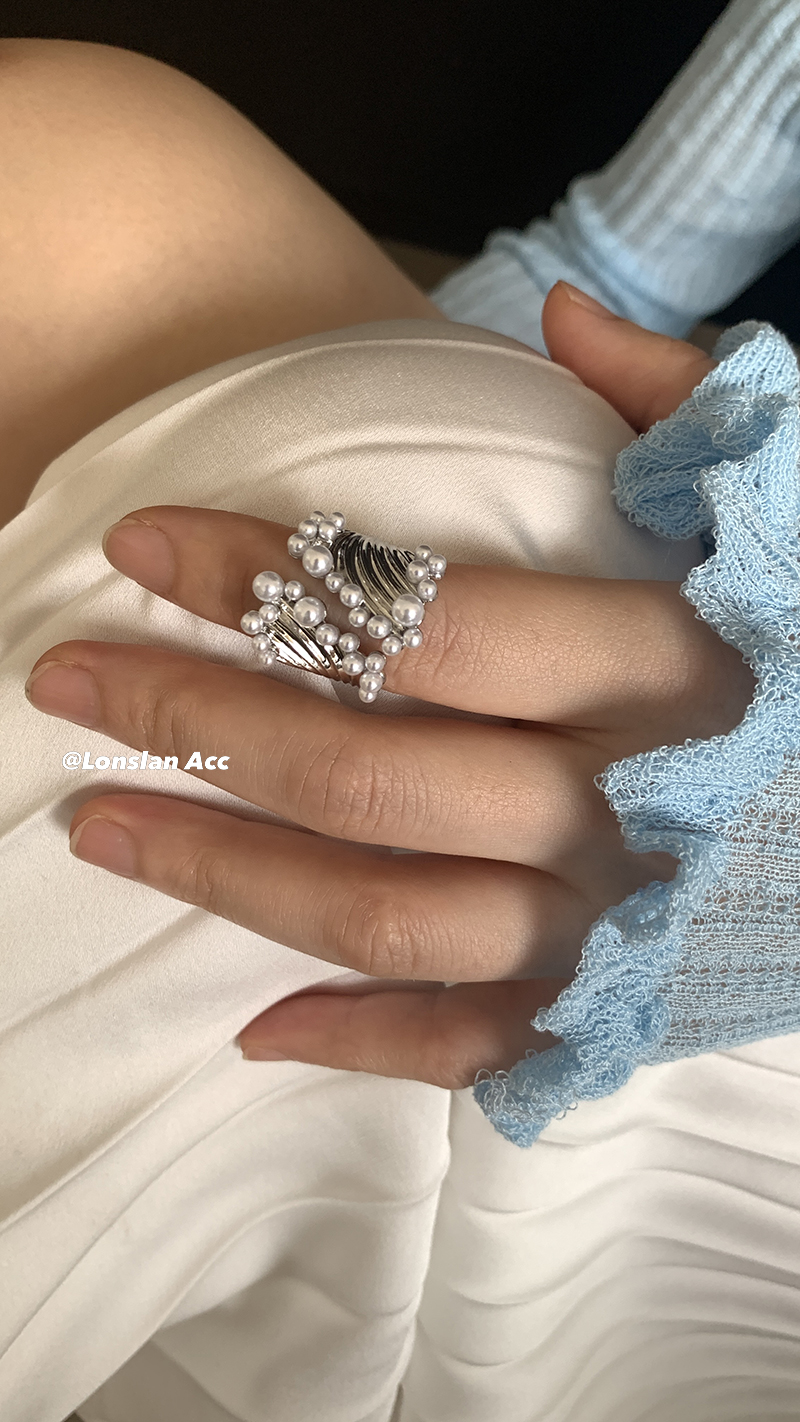 LONSLAN ACC 高级感宽版小众设计珍珠开口花纹戒指