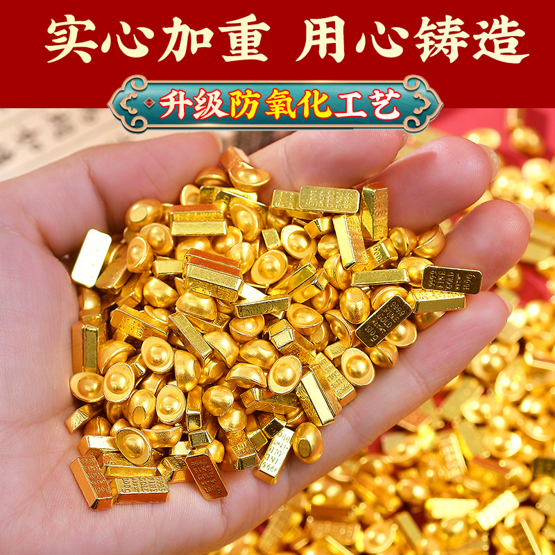 实心沙金小元宝摆件迷你金条小金元宝道具聚宝盆配饰招财工位厂家