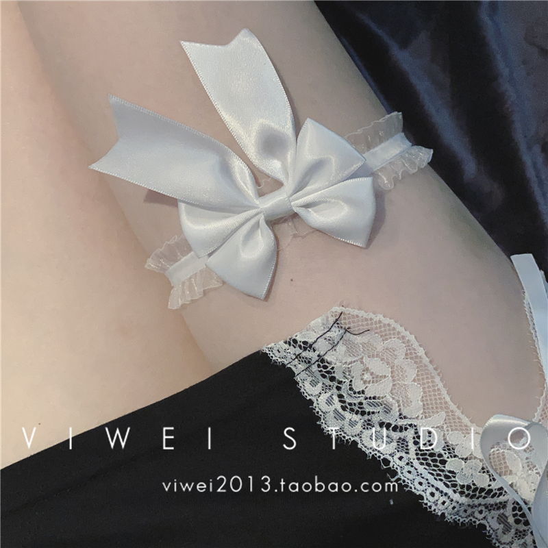 暗黑蝴蝶结。萝莉黑白禁欲系洛丽塔弹力蕾丝哥特性感软妹腿环腿饰