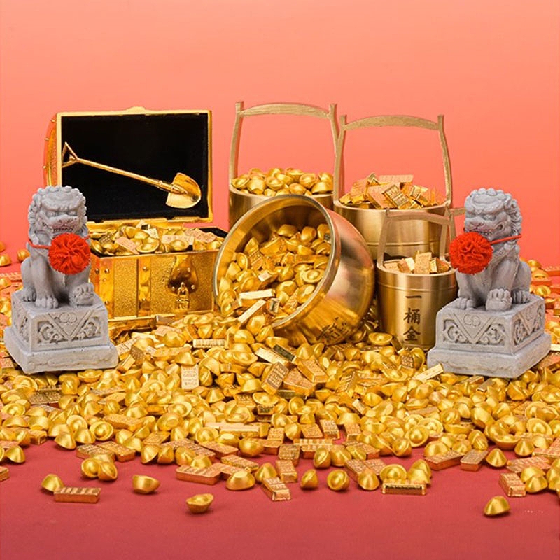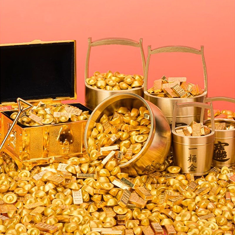 招财聚财一桶金摆件聚宝盆金元宝乔迁新居客厅办公室桌面装饰礼物