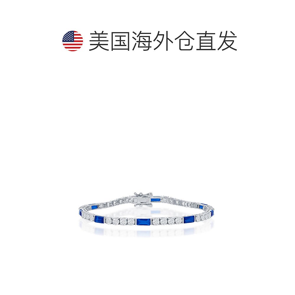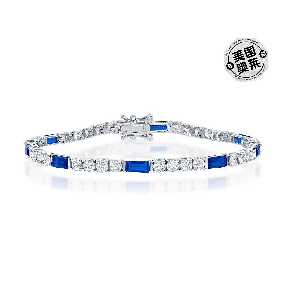自营 simona925 纯银圆形和祖母绿切割 3 毫米网球手链 - 蓝色 美