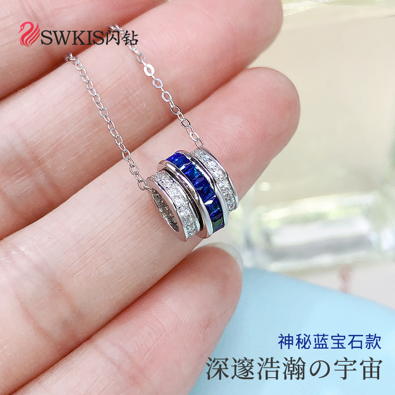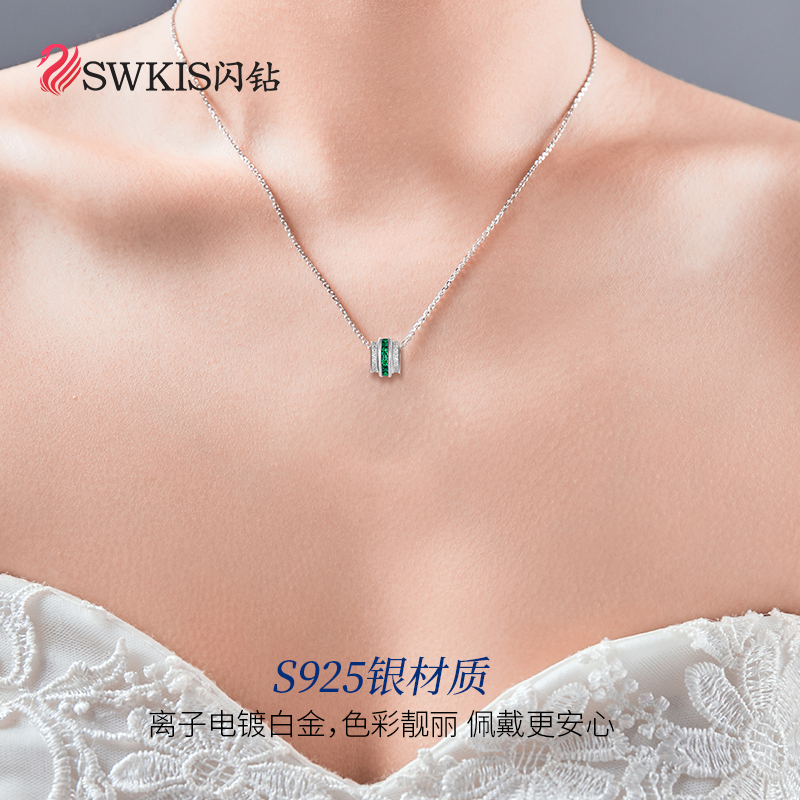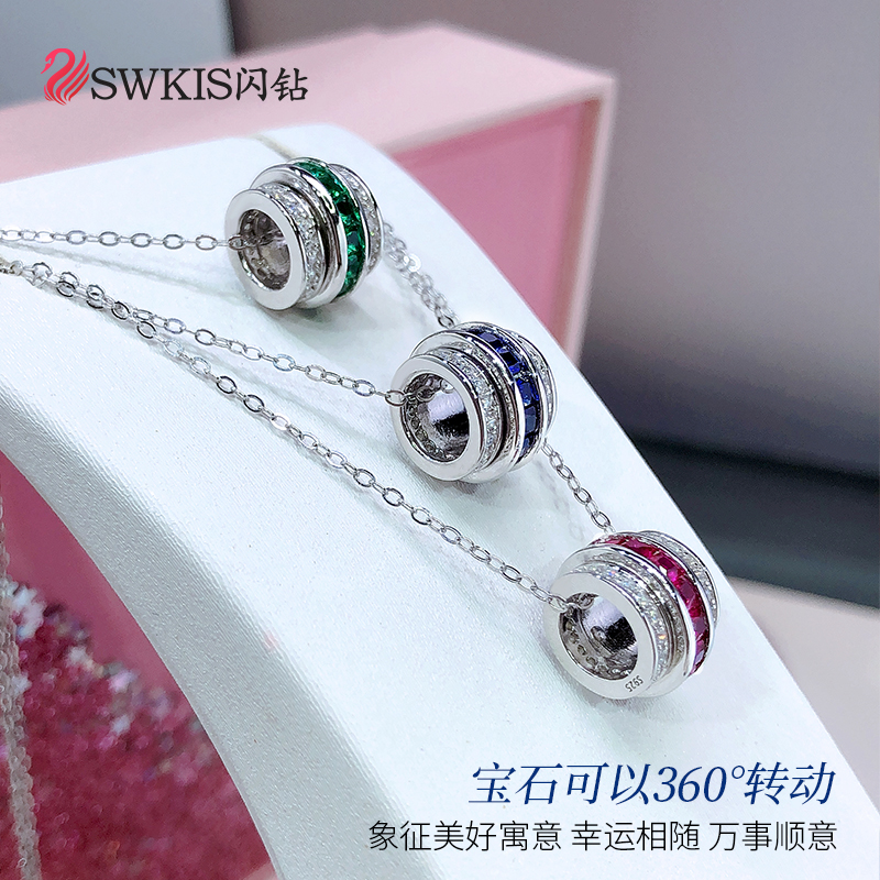 高品质培育祖母绿宝石蓝宝红宝石项链女轻奢礼物送妈妈送老婆彩宝