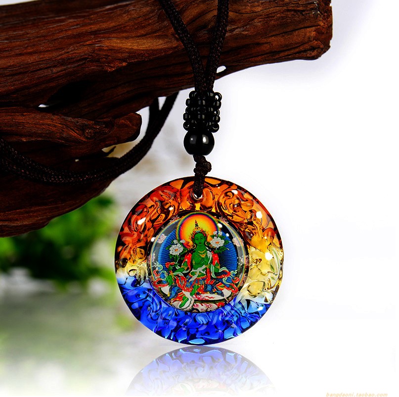 莲花生吊坠文殊菩萨男女项链绿度母挂件楞严咒药师佛画像六字真言