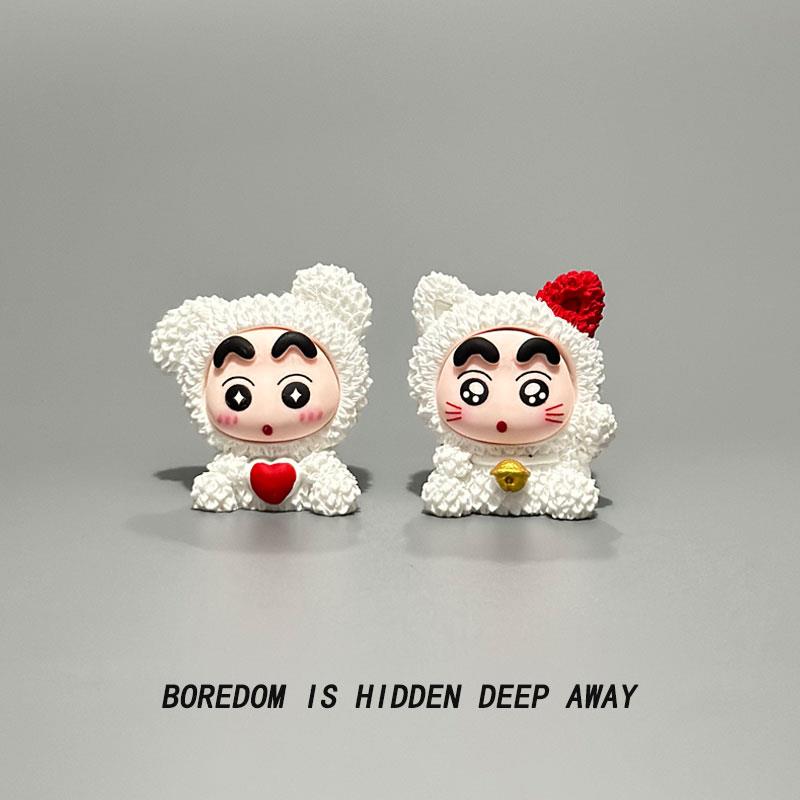 好无聊,摆几只可爱治愈蜡笔小新桌面摆件办公室工位装饰车载饰品