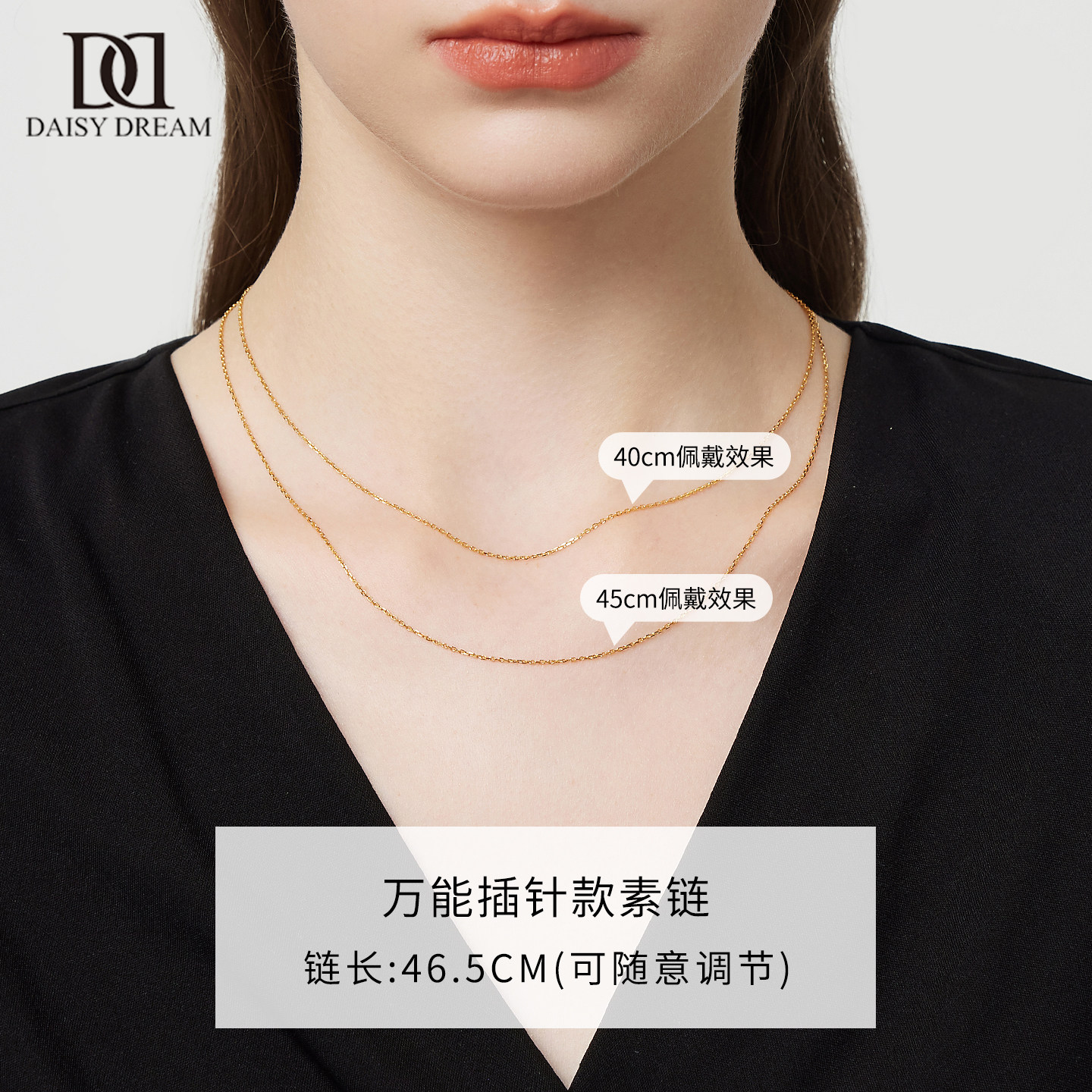 925纯银项链女可穿吊坠针式链串珠链子裸链可调节镀18k金锁骨素链