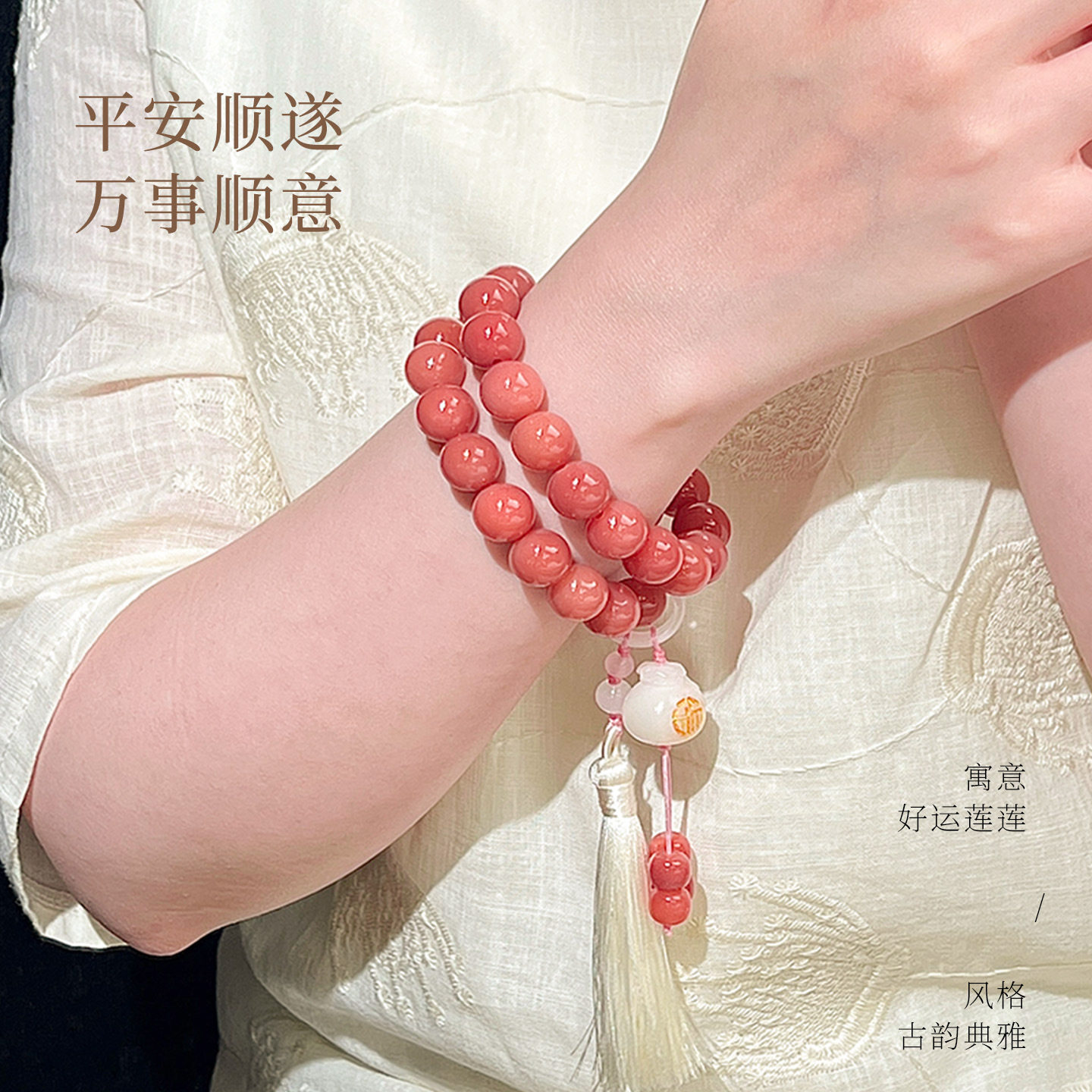 抖音粉紫色菩提子双圈手串女国风手持文玩菩提根盘玩佛珠念珠直销