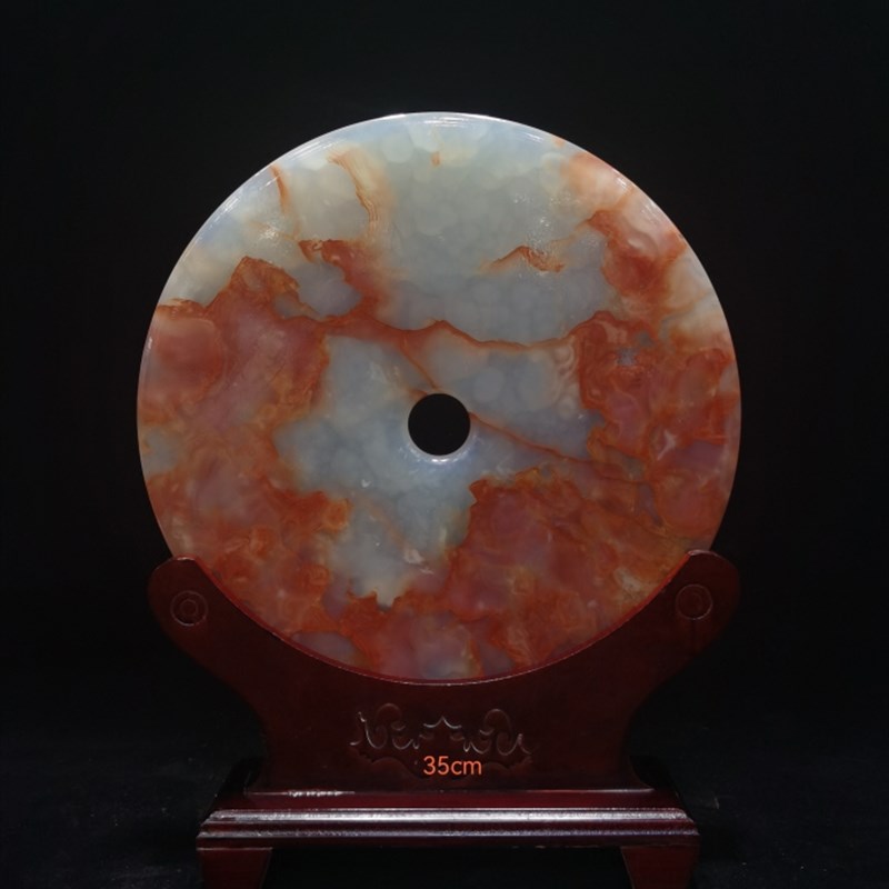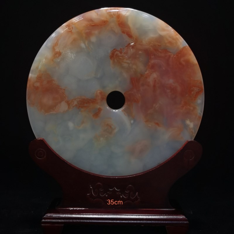 巴基斯坦红花冰玉石平安扣摆件客厅书房玄关电视柜乔迁送礼装饰品