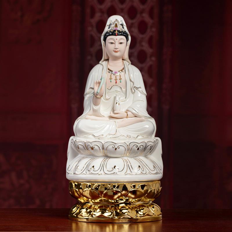 戴玉堂金色莲花底座观音菩萨佛像垫高坐台加高台座陶瓷莲花座摆件