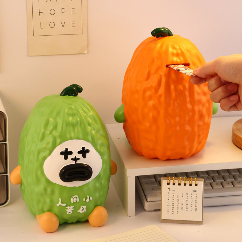 创意卡通苦瓜玉米储蓄罐小摆件大号硬币儿童存钱罐客厅书房装饰品