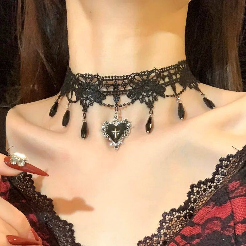 十字架黑色蕾丝choker项链女小众辣妹锁骨链高级感颈链哥特朋克