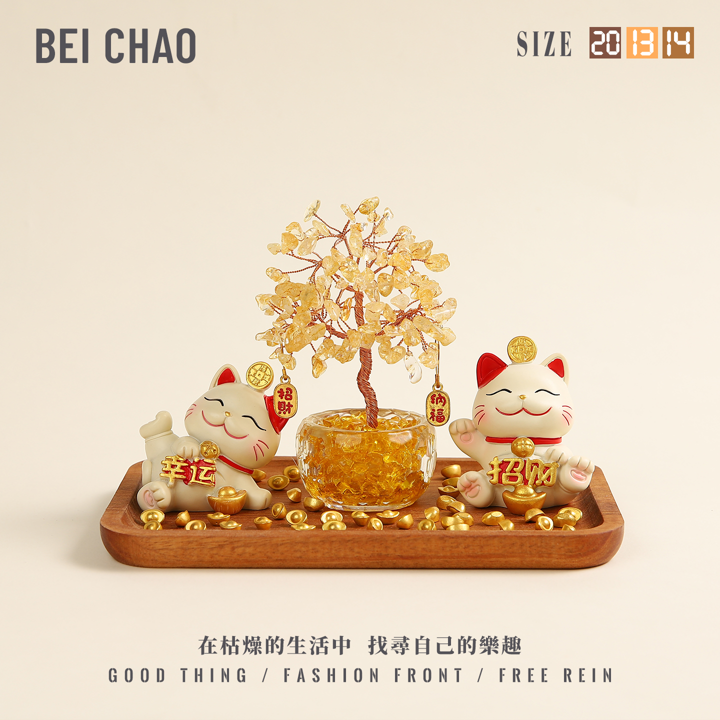 天然黄水晶发财树办公室好物桌面小摆件女生工位玄学招财装饰礼物