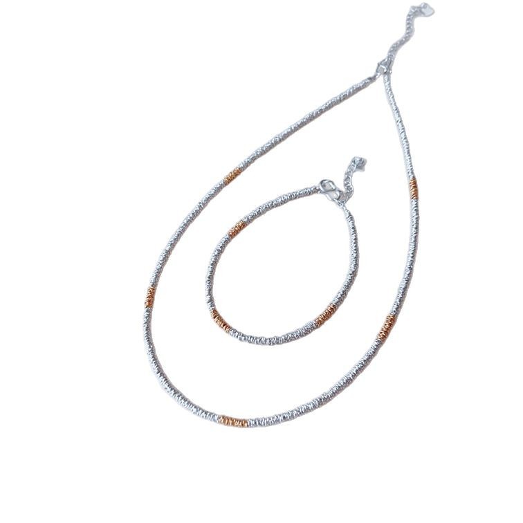 足银999小百圈搭配金色碎银子手链项链圈链小众设计时尚简约银圈