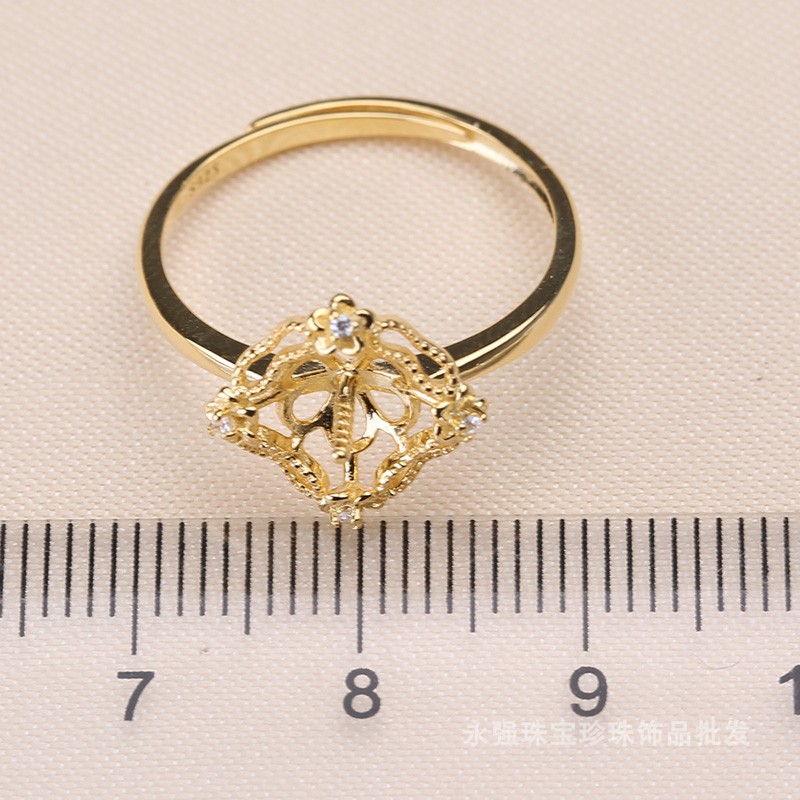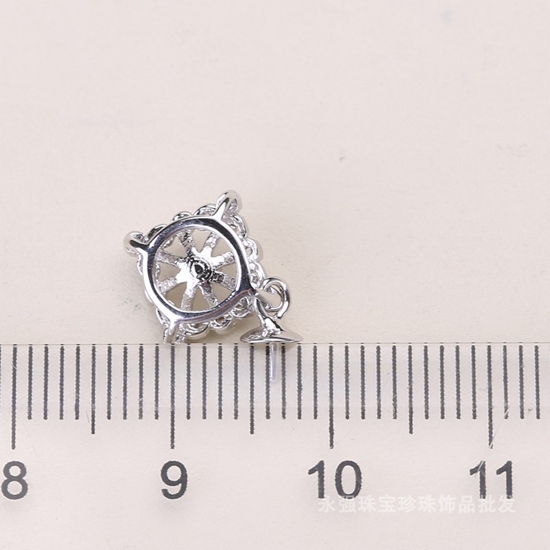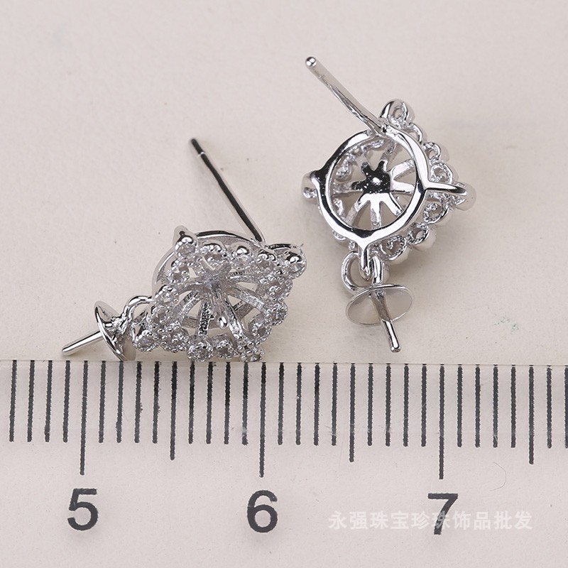 DIY配件 S925纯银三件套双珠蕾丝吊坠戒指耳钉空托珍珠半成品