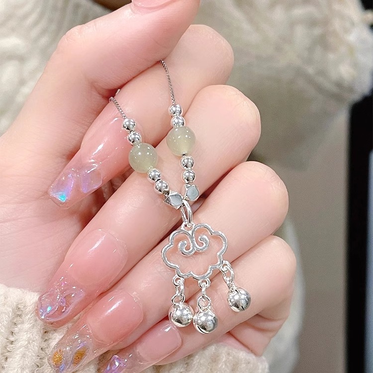 新中式国风仿和田玉铃铛如意锁吊坠项链轻奢小众气质高级感锁骨链