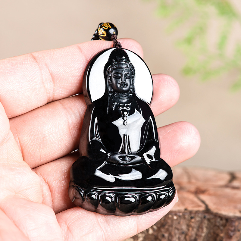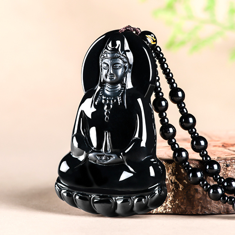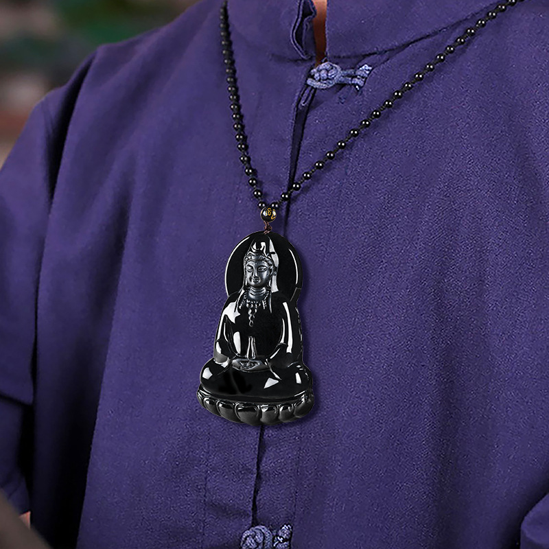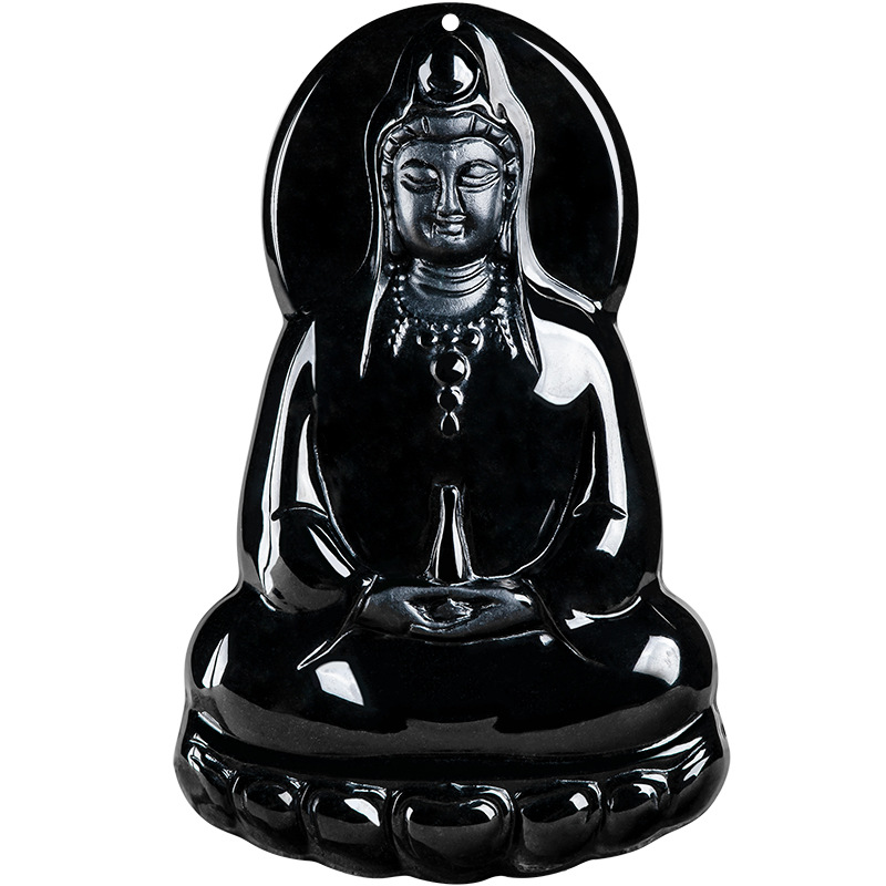 天然保真墨翠a货翡翠素衣净瓶观音佛像玉石吊坠透绿挂件男士项链