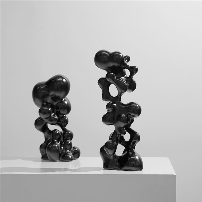 现代轻奢抽象黑色k白色树脂几何摆件样板房售楼处雕塑软装家居装