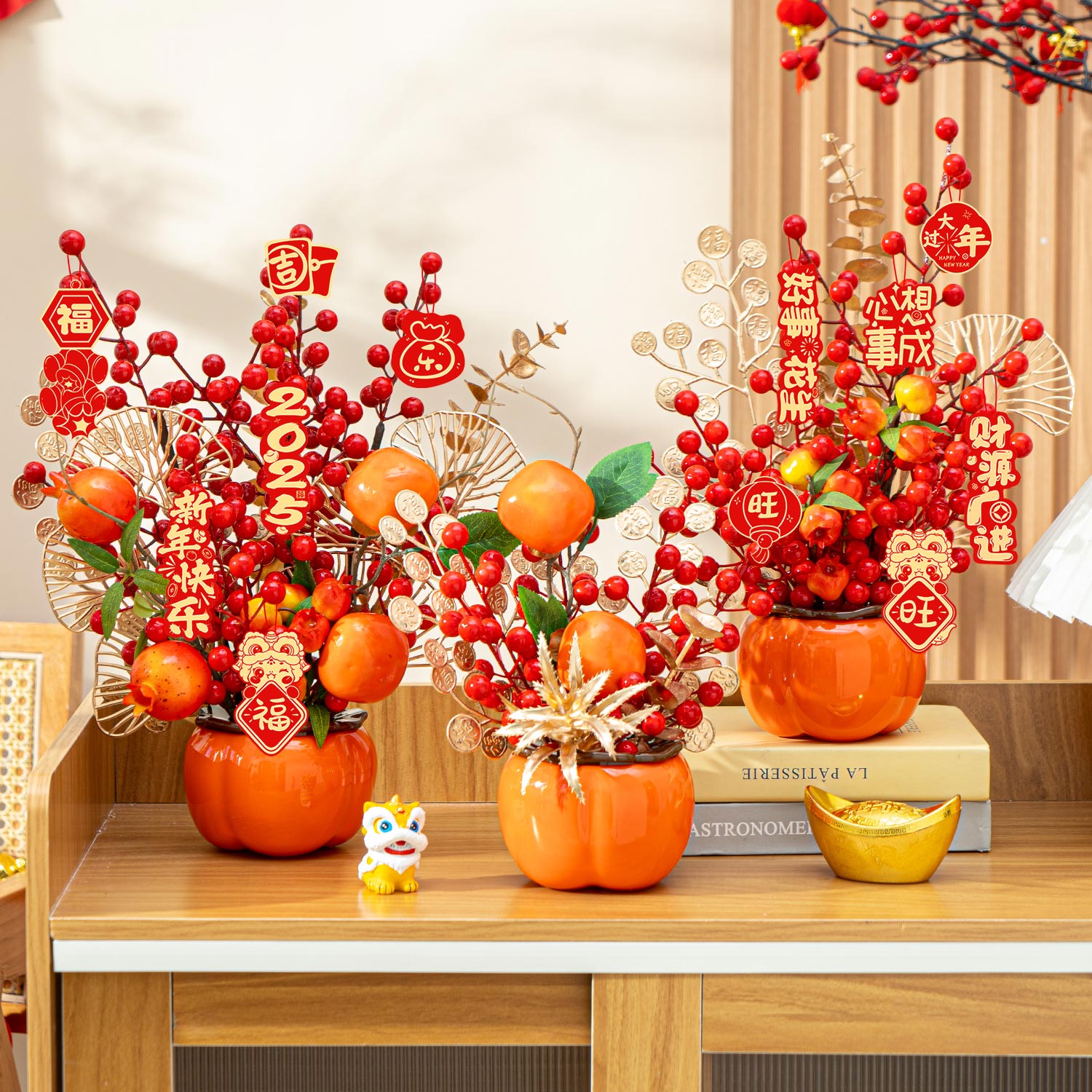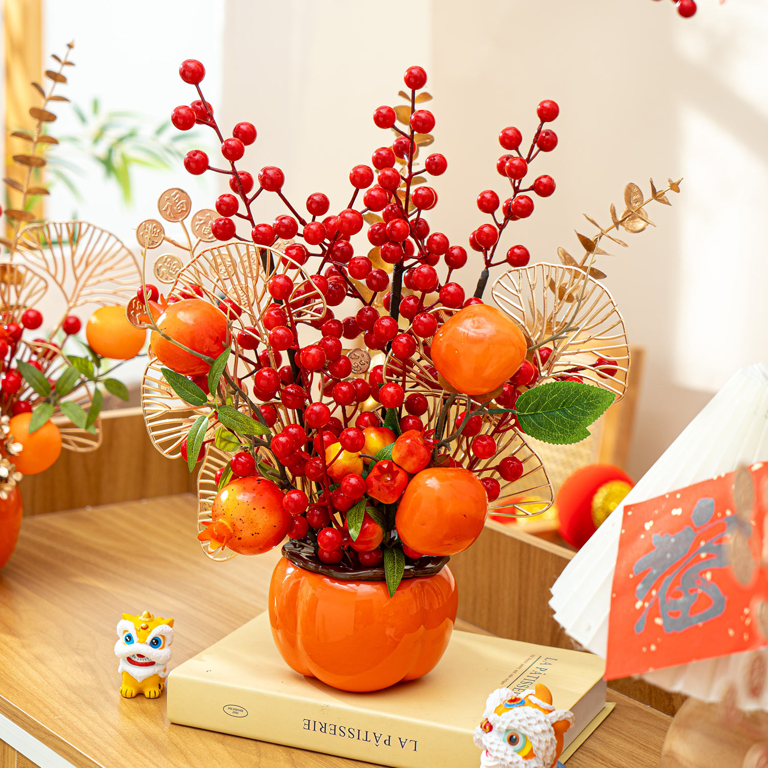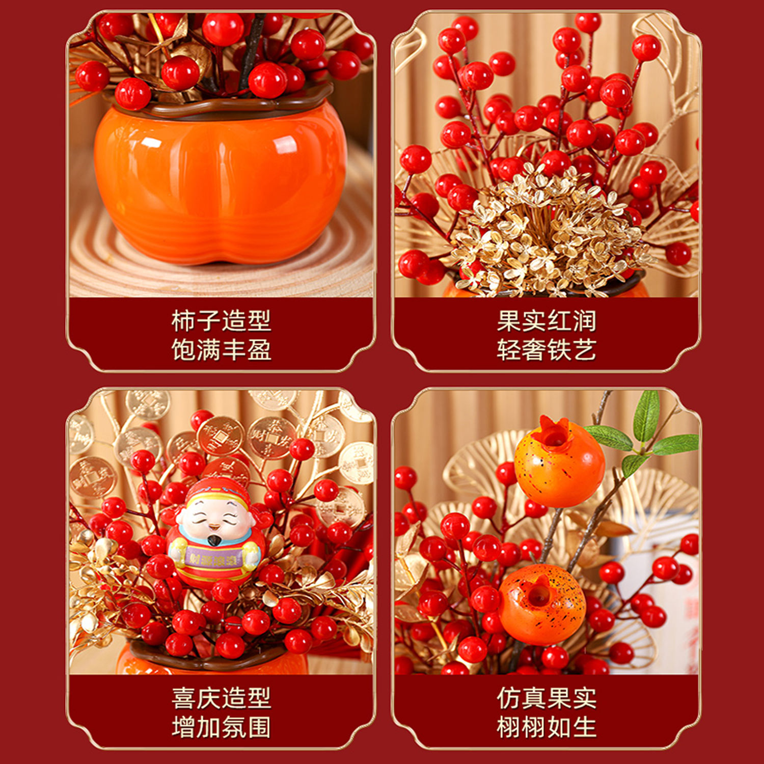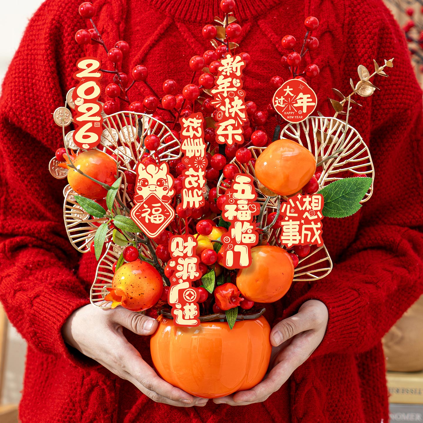 新年礼品2026春节马年过年客厅桌面装饰柿柿如意春节红果布置摆件
