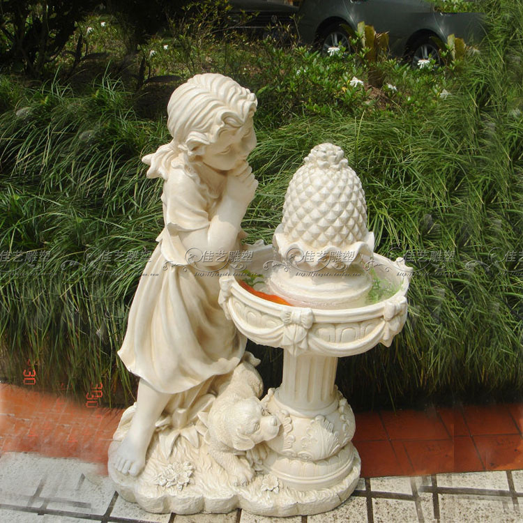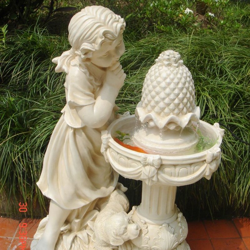 欧式玻璃钢人物雕塑艺术品客厅户外落地摆设可定制作女孩流水喷泉
