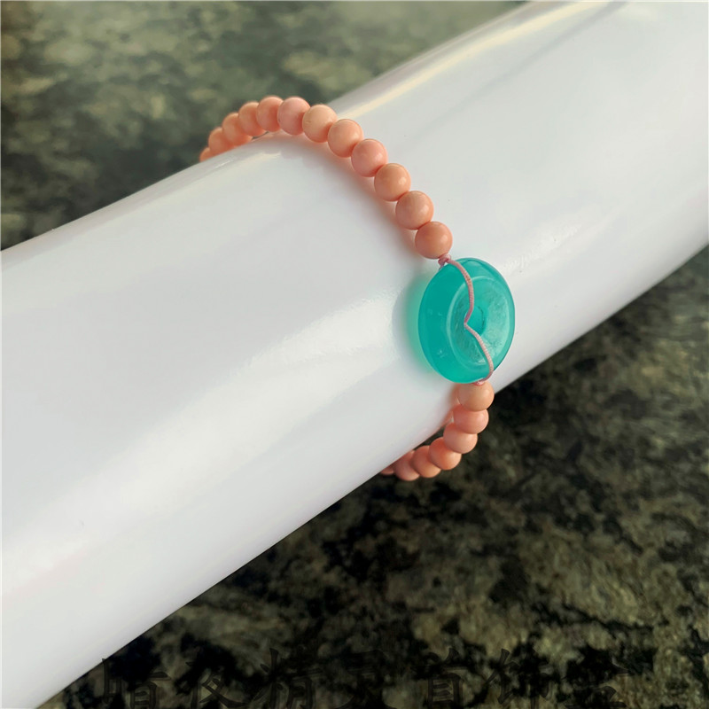 天然正品粉贝珊瑚贝手链女手串配亚马逊天河石平安扣手工编织手绳