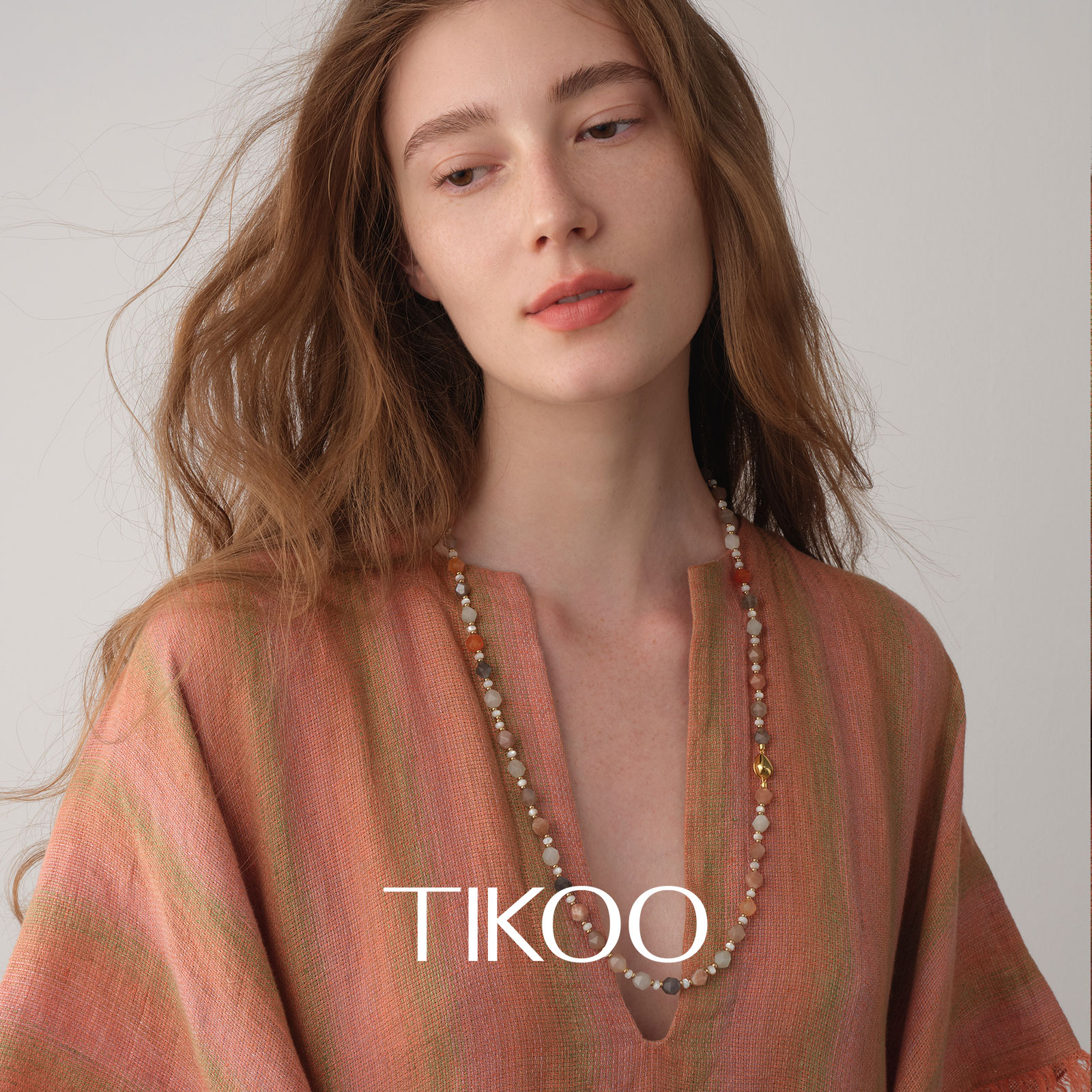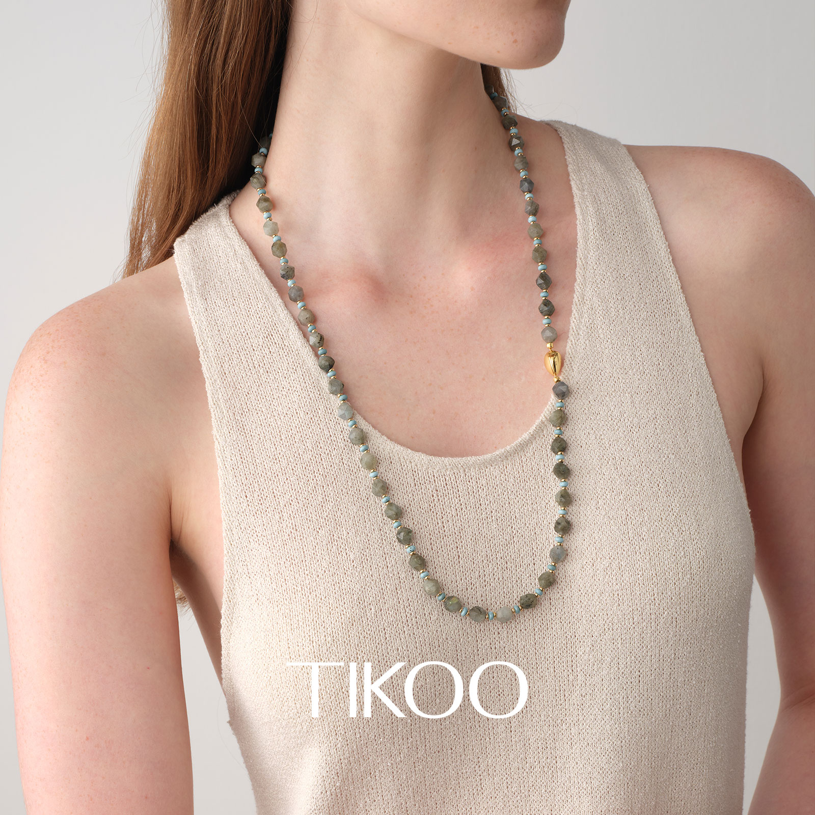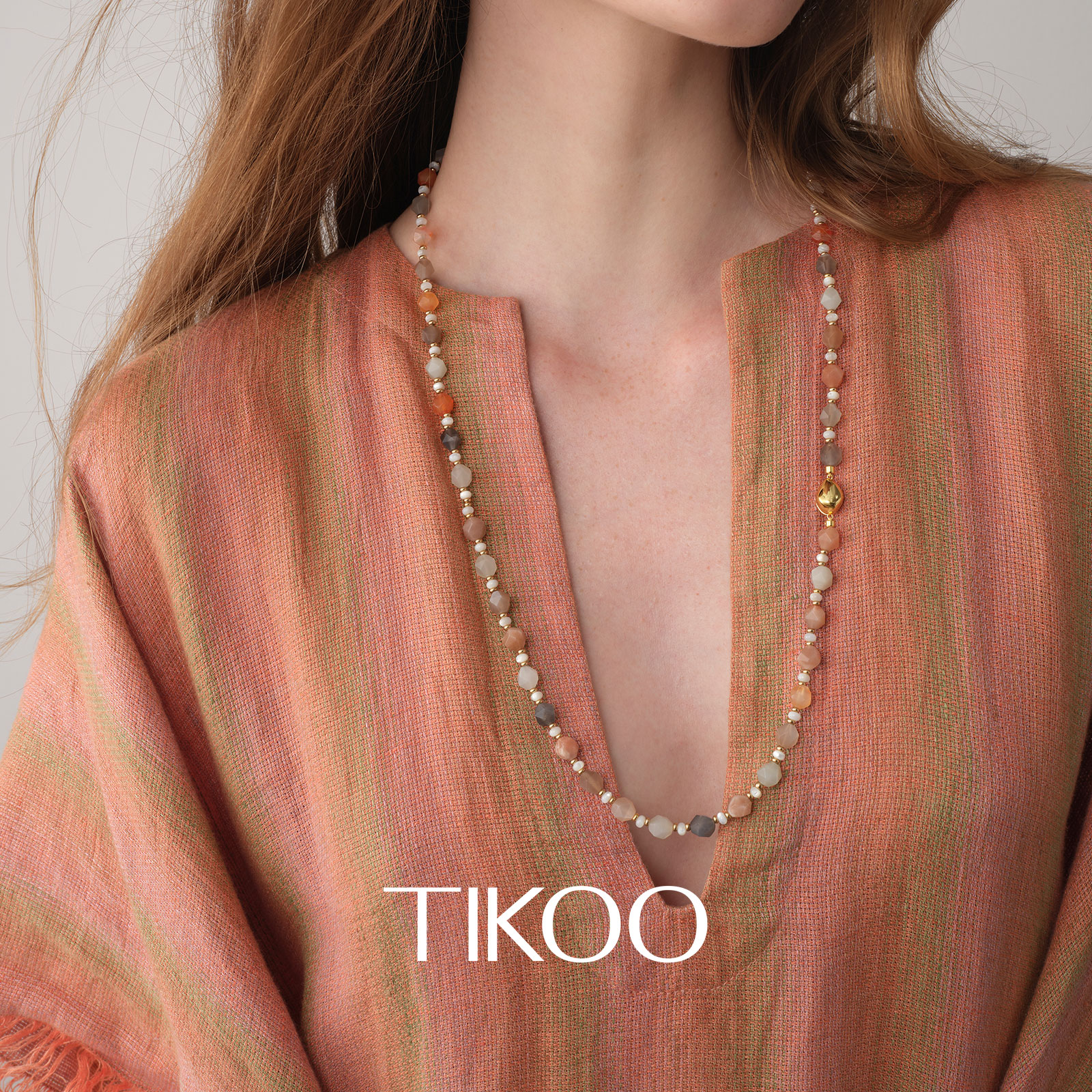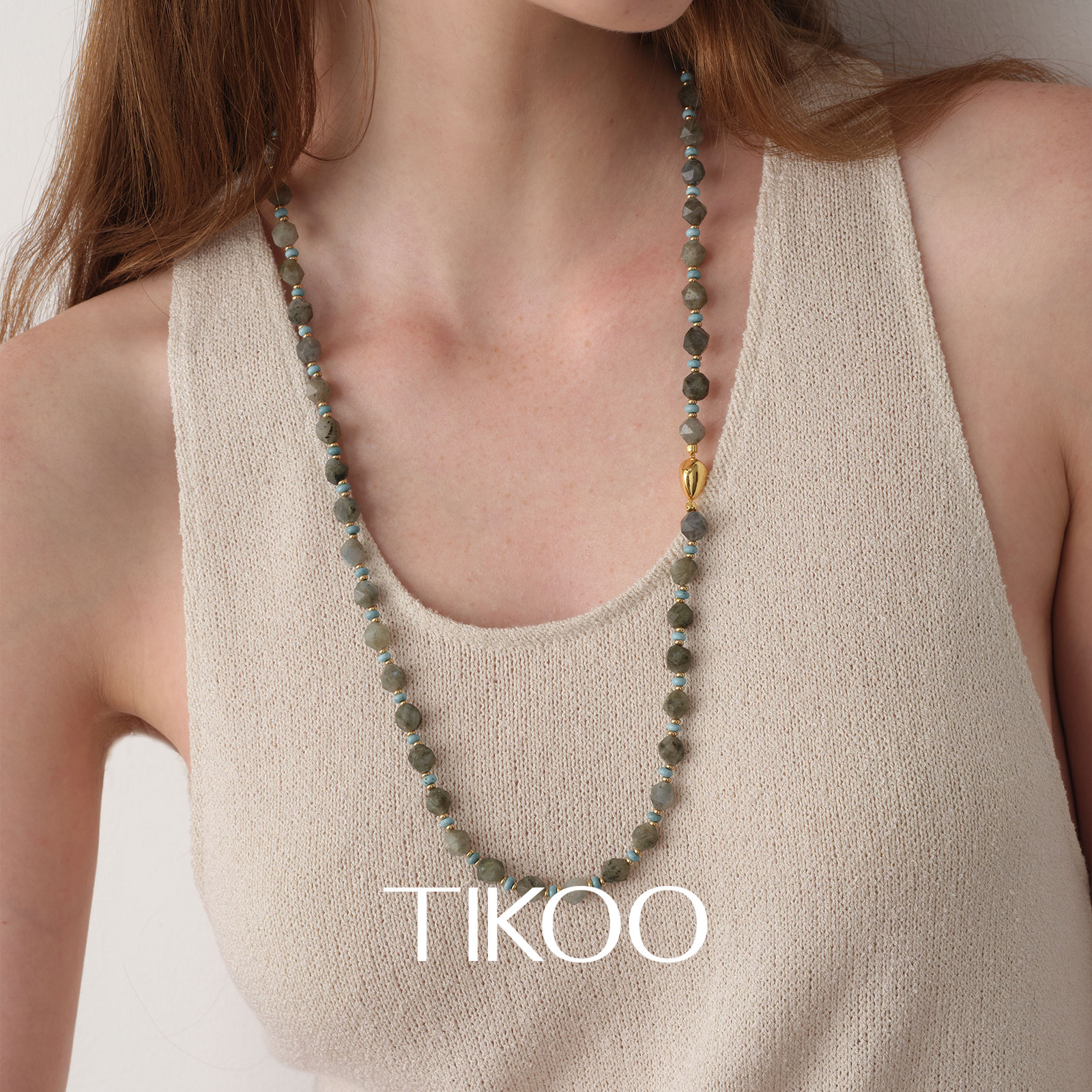 TIKOO串珠长项链女磁扣拉长石月光石灰色橙新款个性时尚叠戴配饰