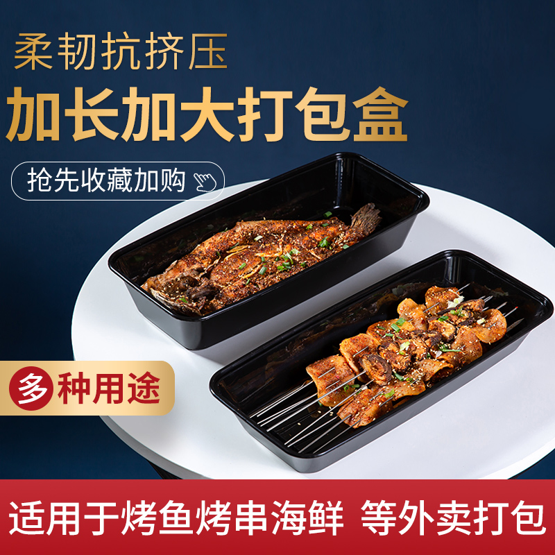 2000/3600ml烤鱼一次性餐盒长方形烧烤鱼盒外卖打包盒快餐饭盒