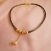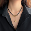 黑色皮绳项链女欧美甜酷简约性感锁骨链钛钢圆珠吊坠个性网红饰品