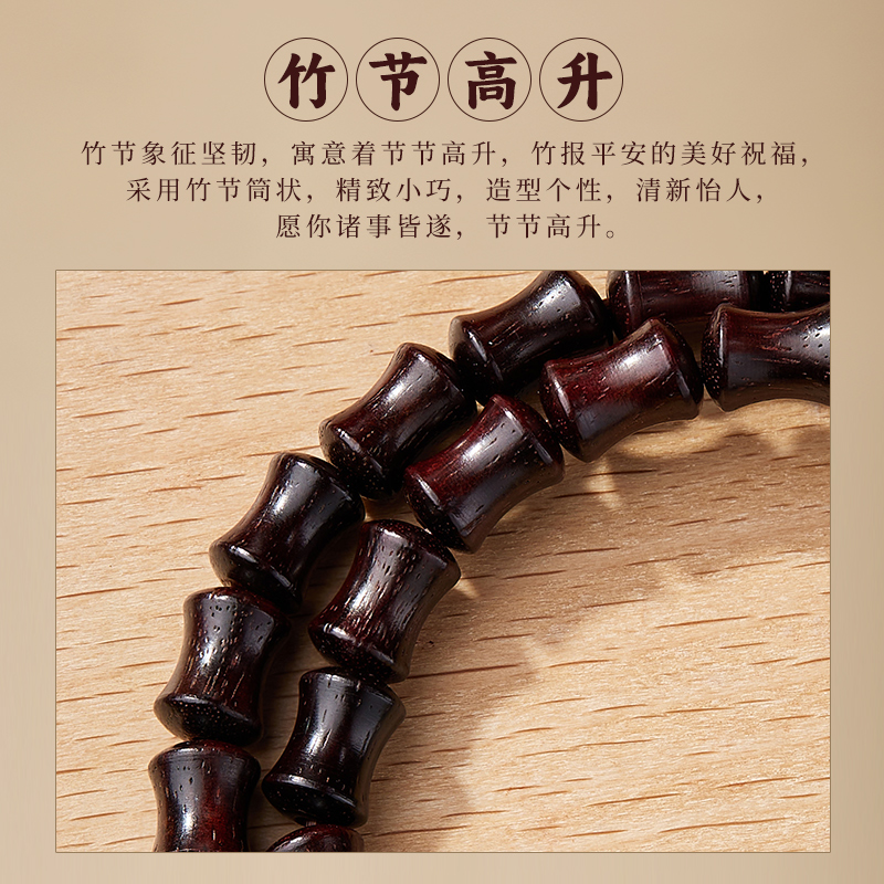 小叶紫檀手串女竹节玛瑙翡翠和田玉双圈中式国风文玩佛珠檀木手链