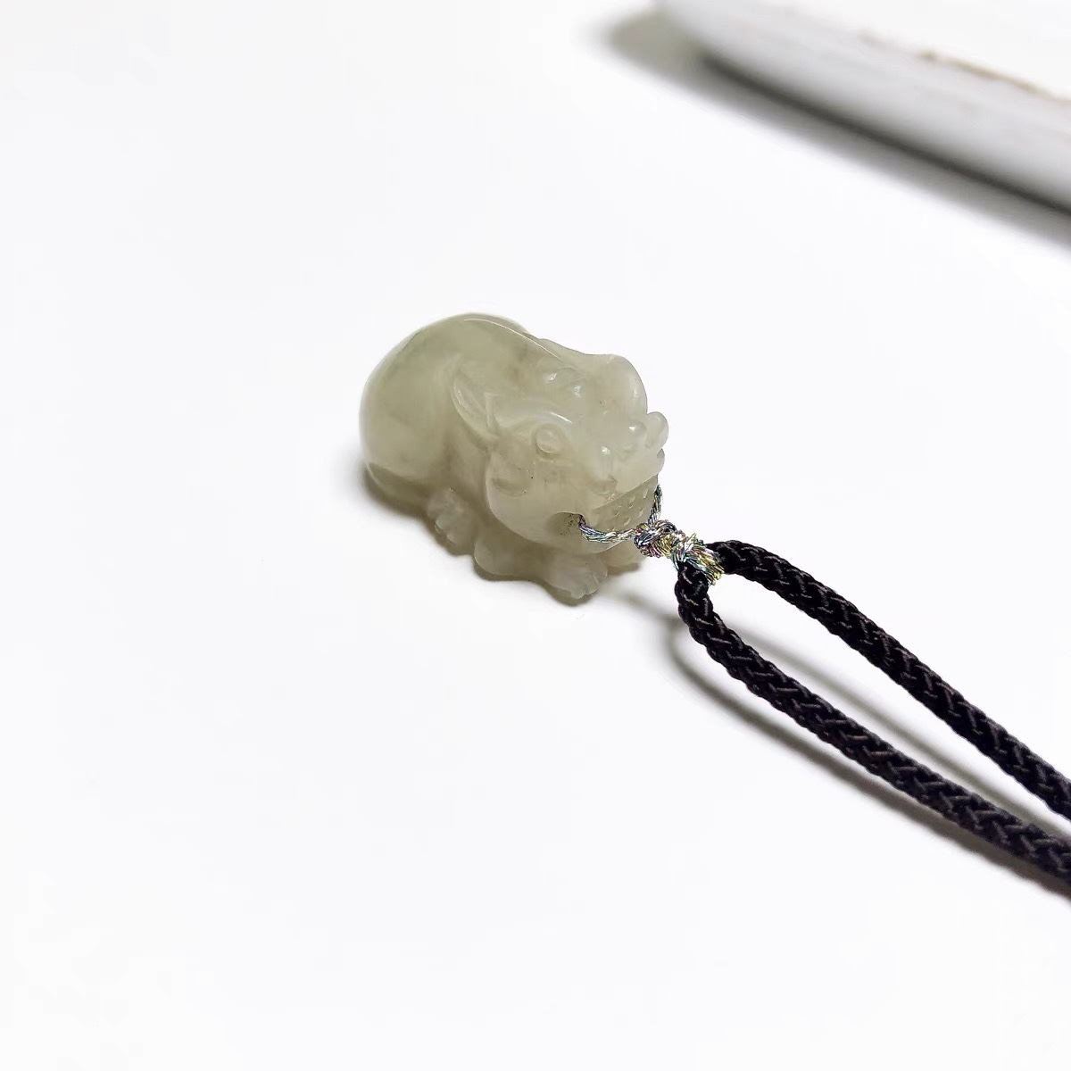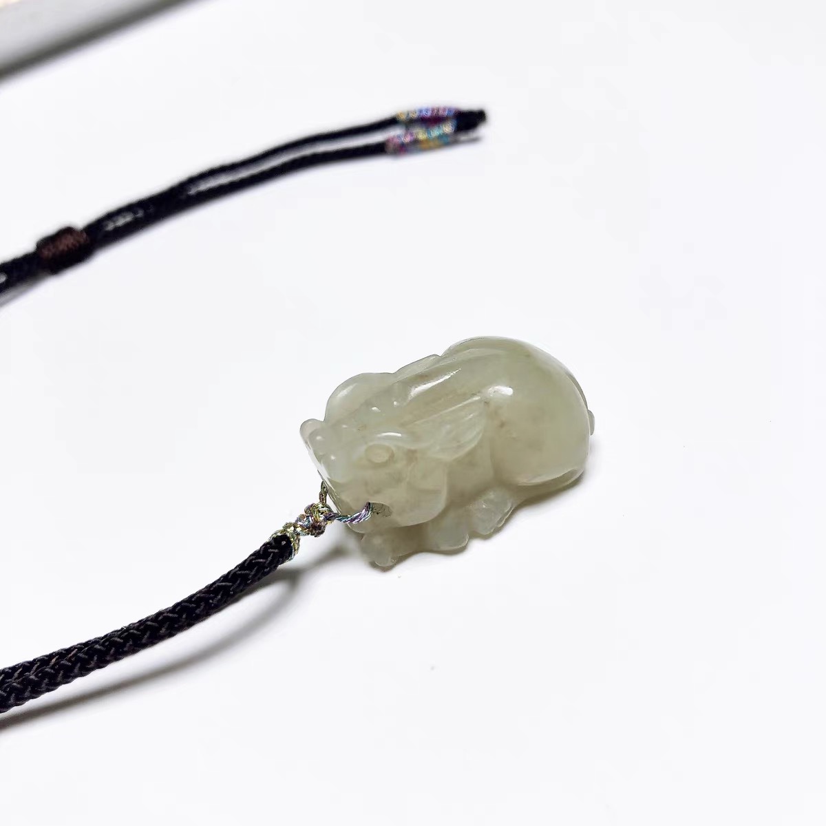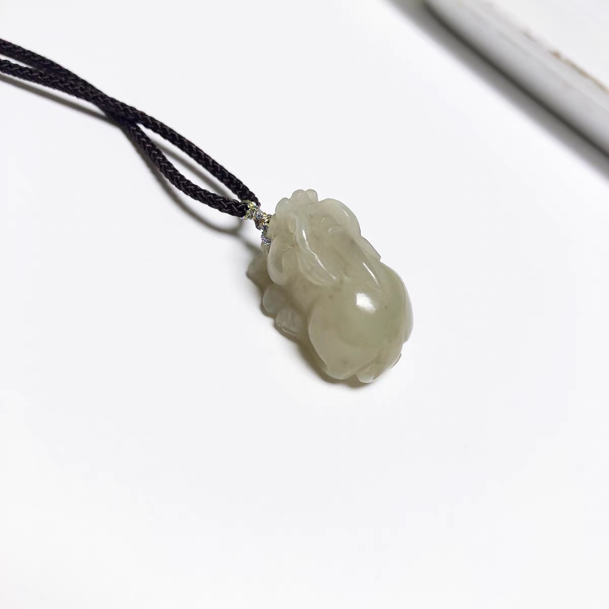 D186# 天然和田玉青玉貔貅吊坠25.5*15*15mm 配证书