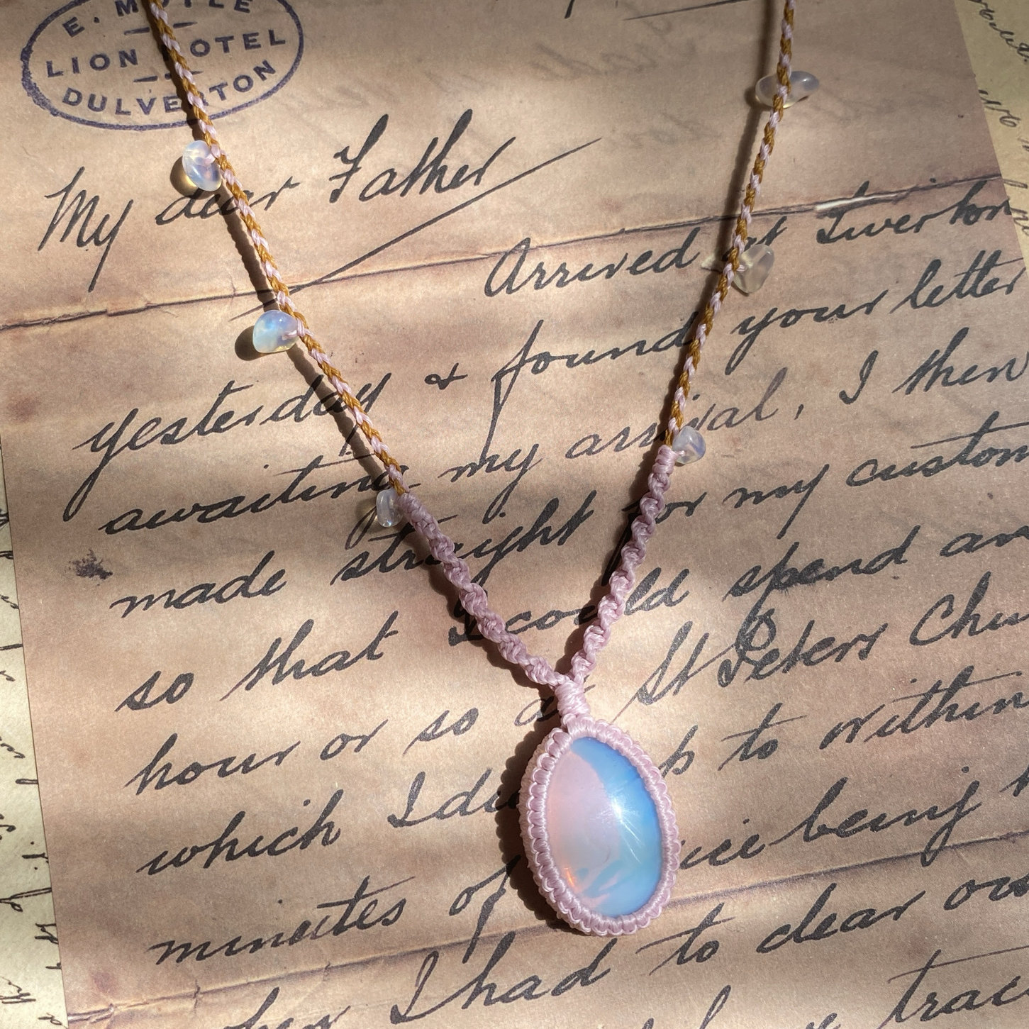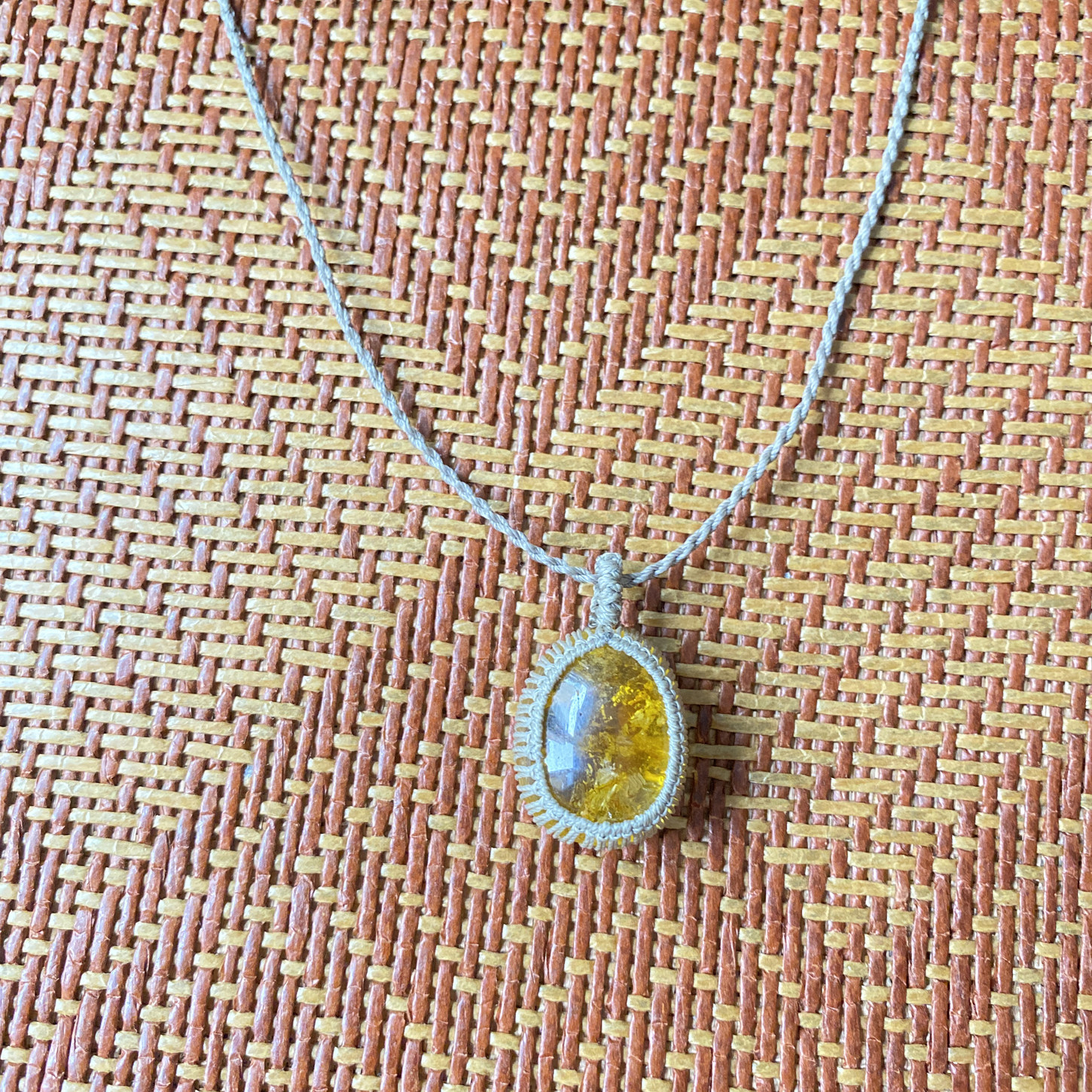 macrame原创虎眼石天然原石手工包石头编绳锁骨链项链挂坠吊坠
