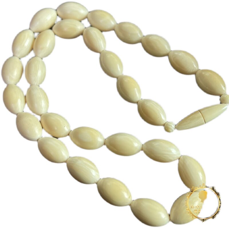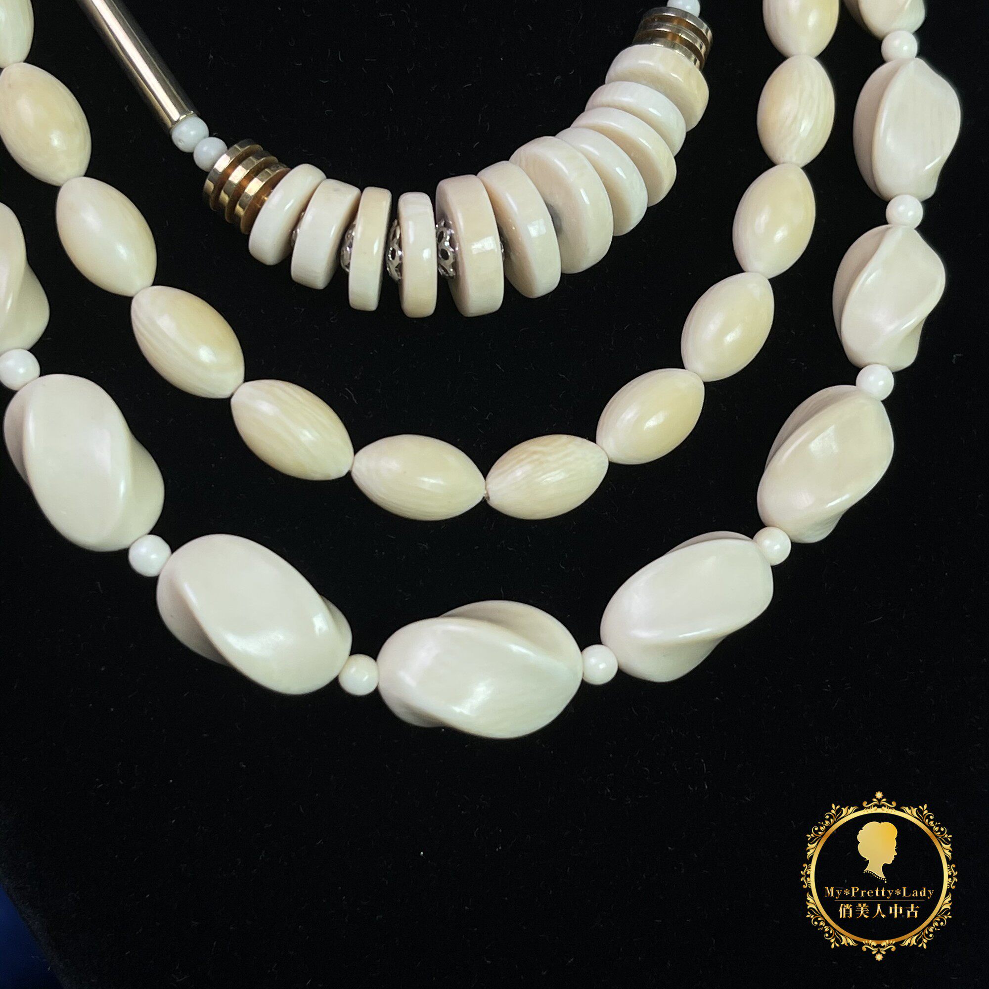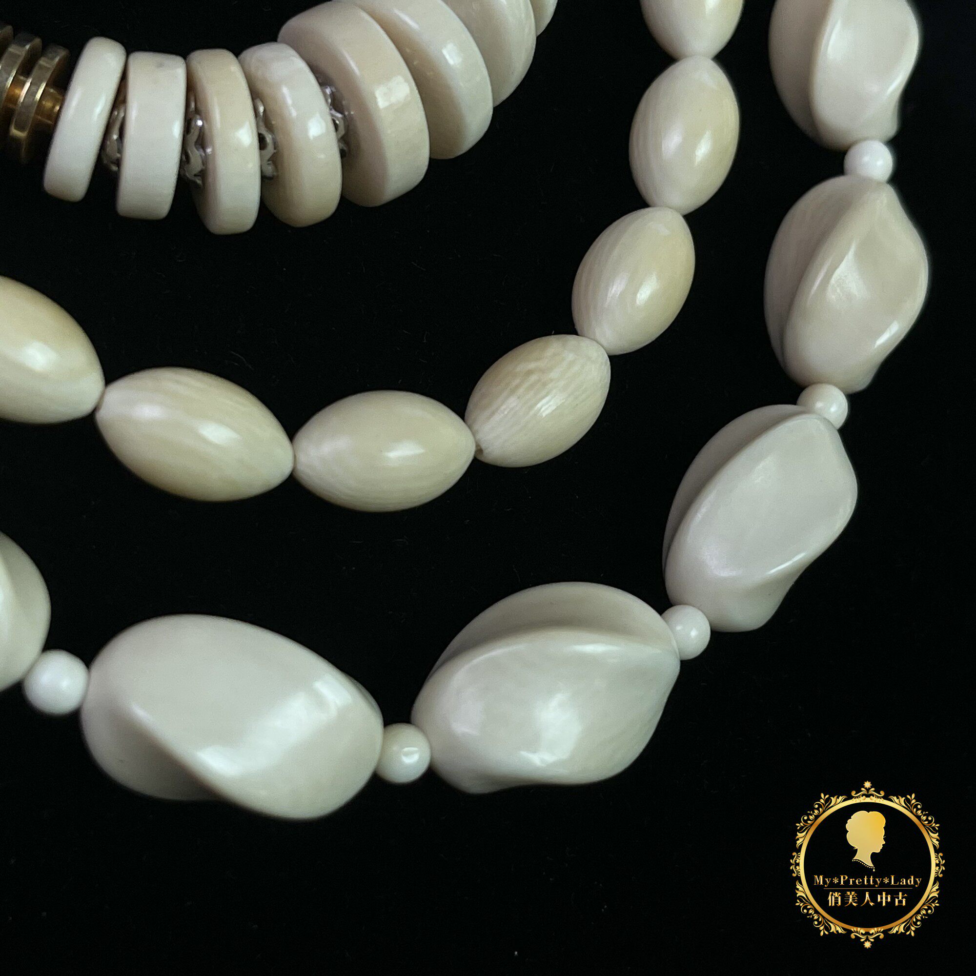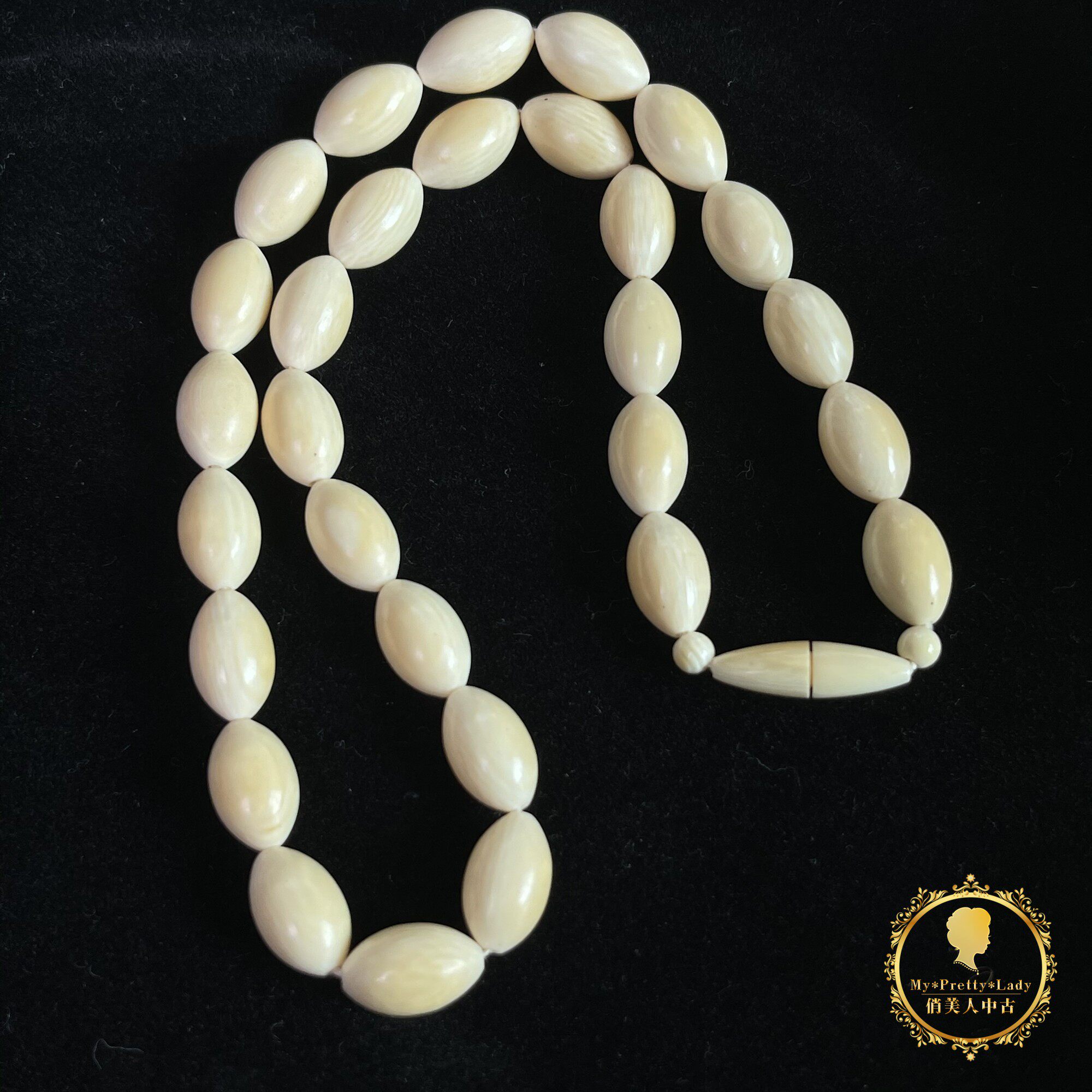 vintage日本古董天然温润有机白色网纹材质老物件海外中古项链Z16