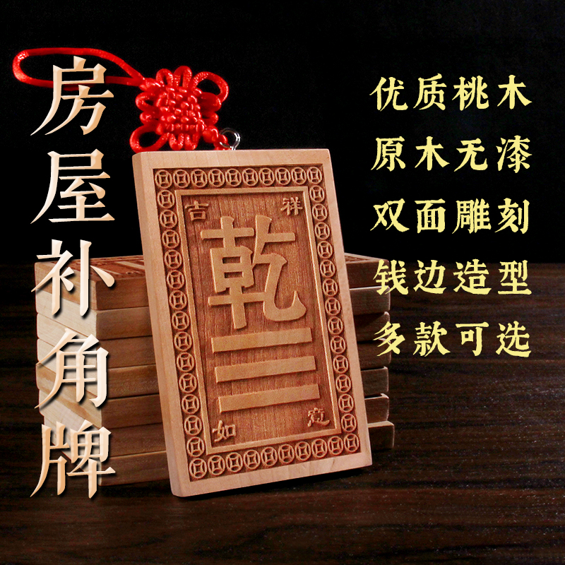 桃木八卦补角牌挂件房屋缺角木雕乾坤艮巽兑坎离震卦位字东南西北