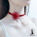 棠洛 红色花苞玫瑰choker颈带女绕脖颈链花朵项链小众氛围感饰品