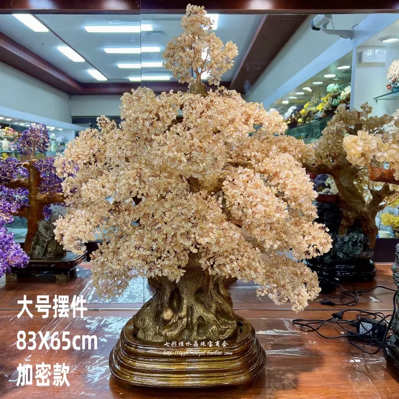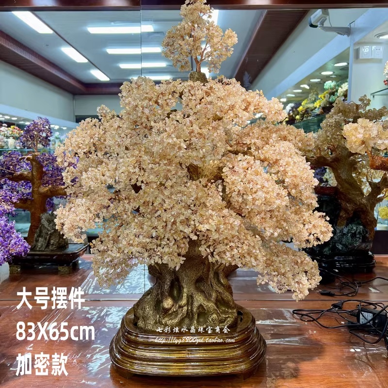 黄水晶发财树落地大号摆件加密客厅电视柜玄关乔迁开业中秋节礼品