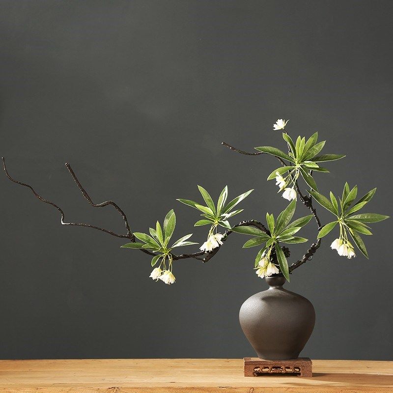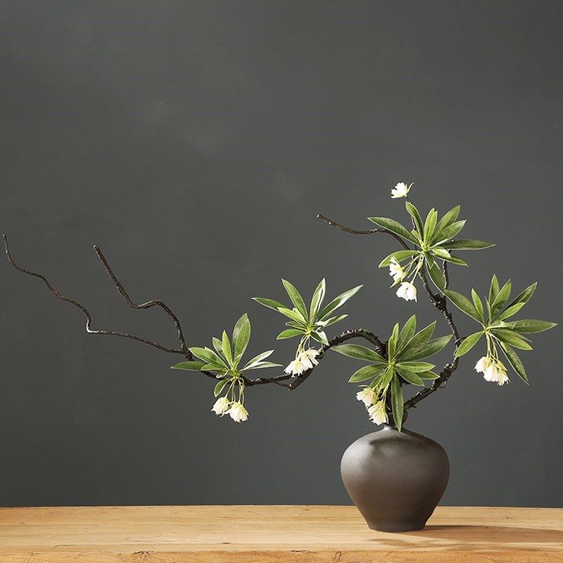 侘寂风中式陶瓷花瓶摆件枯藤假花客厅玄关酒店装饰品餐桌仿真花盆