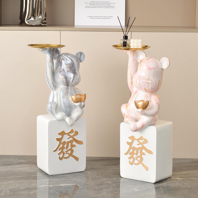 网红新年招财暴力熊托盘落地大摆件客厅家居开业礼物乔迁装饰礼品