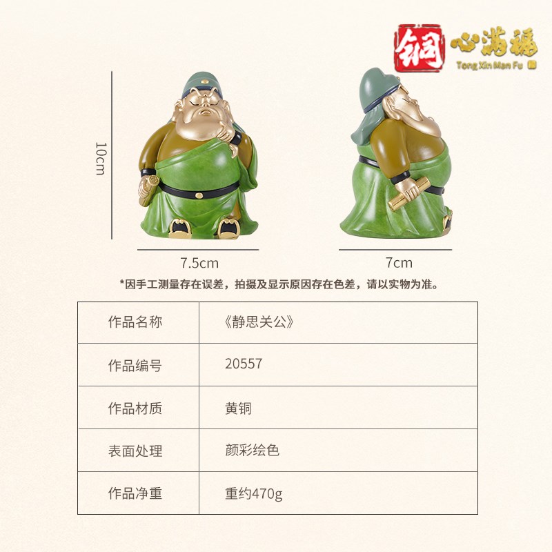 铜摆件静思关公 客厅桌面饰品 黄铜工艺品 Q萌小关公创意礼品